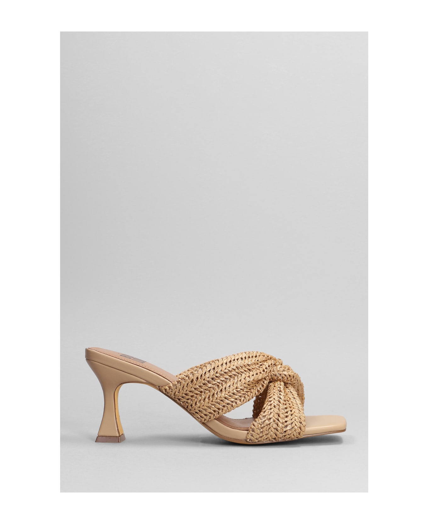 Slipper-Mule in leather color synthetic fibers, woven design, cross straps, square open toe, heel 95 mm, leather sole, Made in Spain