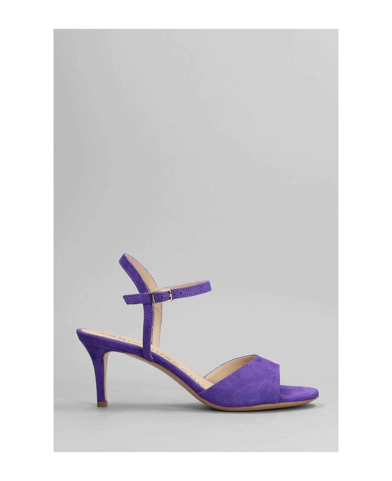 Sandals in Viola suede, sling back, pointed toe, leather sole, heel 75mm, Made in Italy, 100% suede