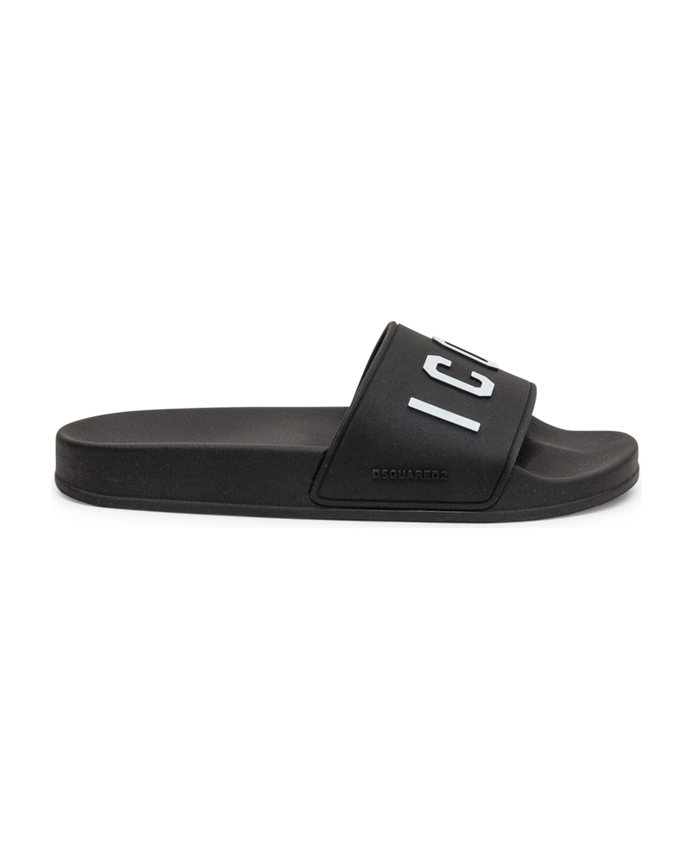 Flat rubber sandals. Logo on the band and on the sole.