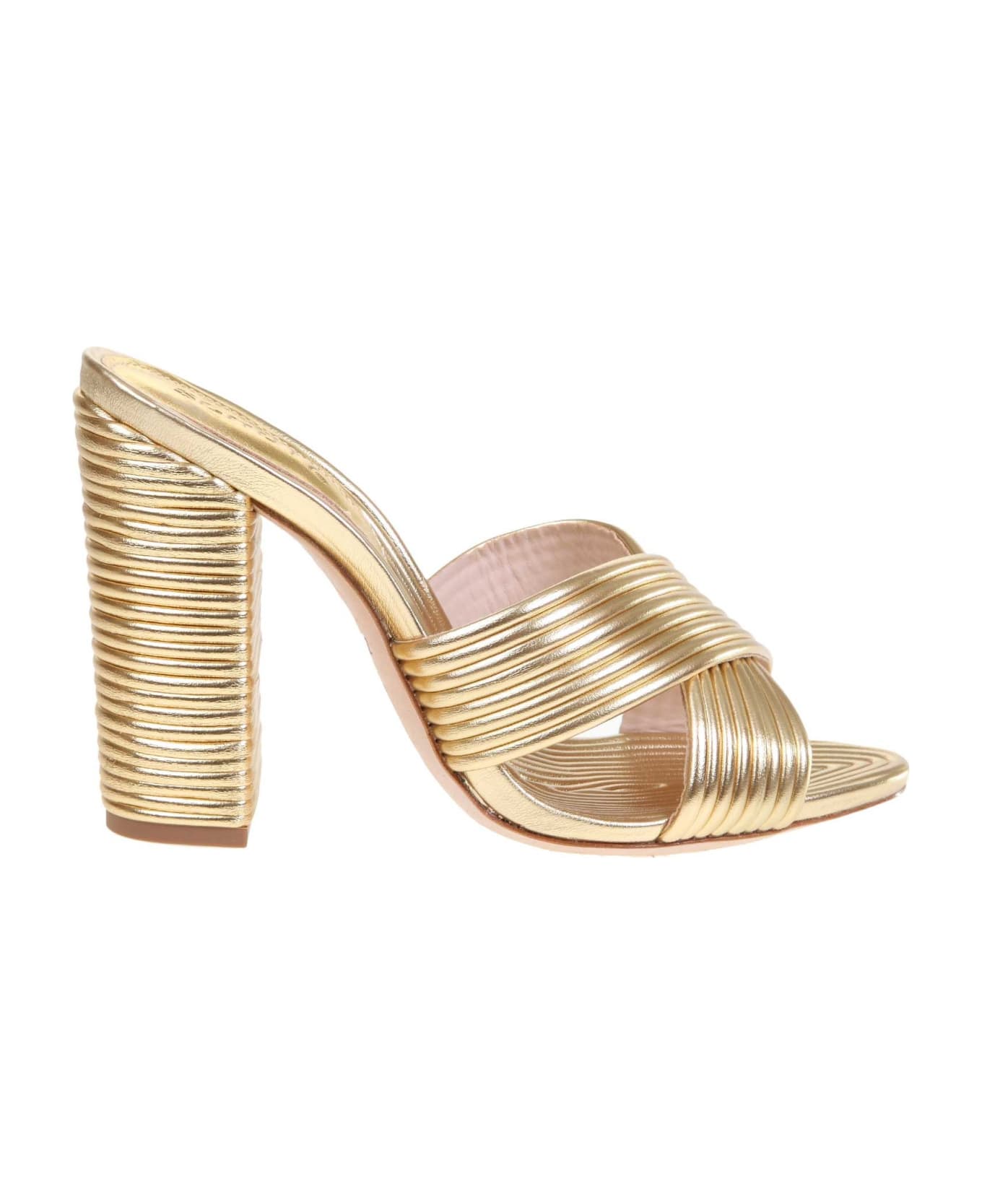 Sandal in laminated leather colour gold model with open round tip leather interior leather sole