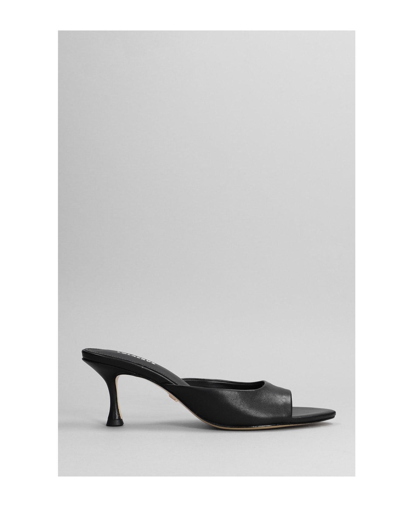 Slipper-Mule in black leather, one strap, square open toe, heel 75mm, 100% leather, leather sole, Made in Spain
