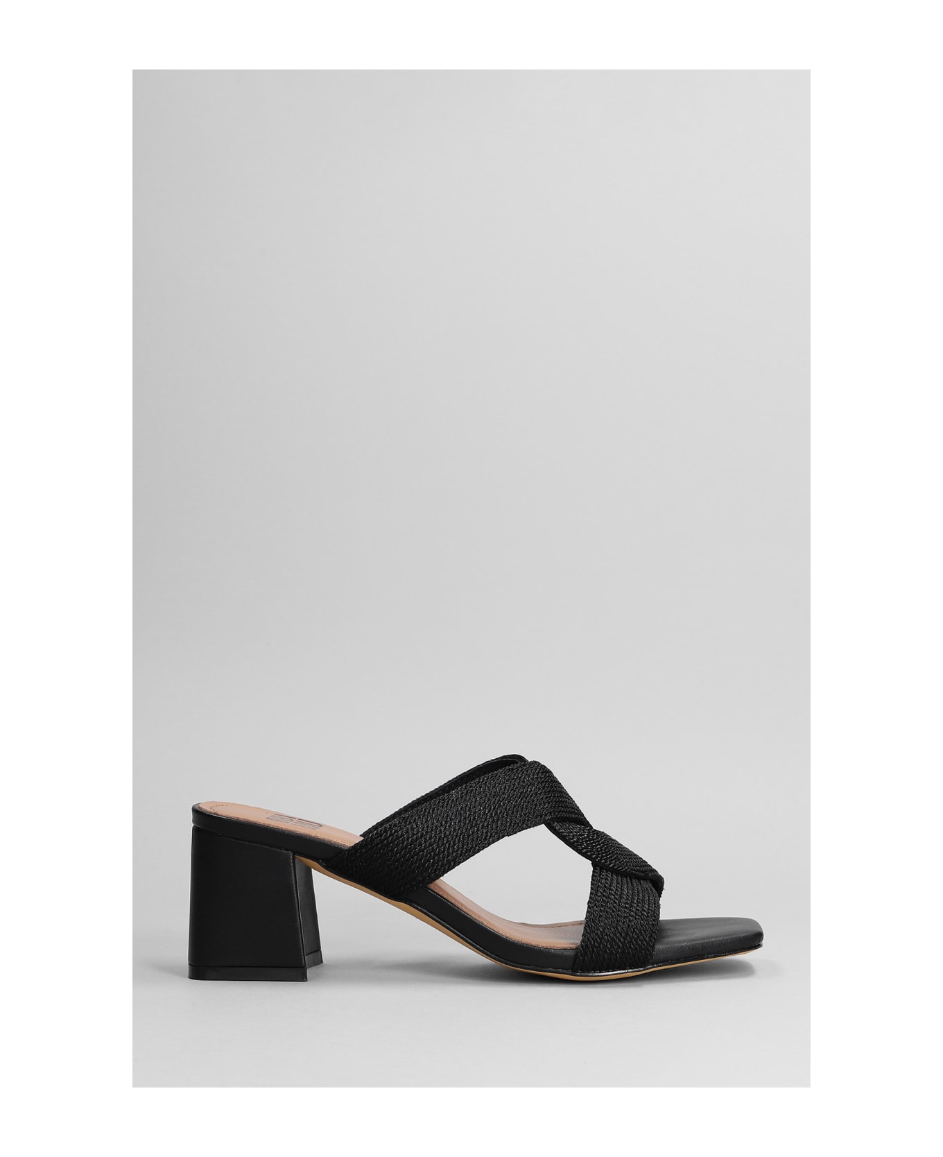 Slipper-Mule in black synthetic fibers, two straps, woven design, 70 mm heel, leather sole, Made in Spain