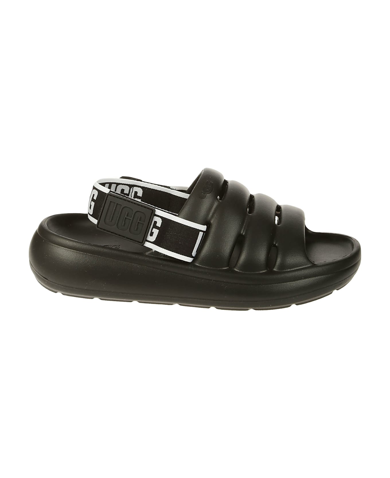 UGG Black rubber sandal, elastic on the back, logo detail.