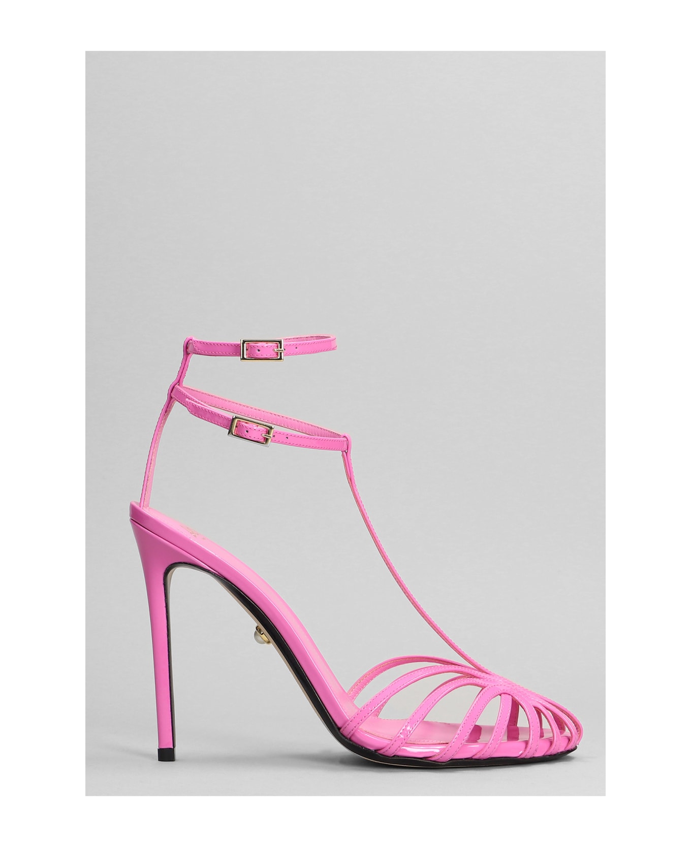 Stella 110 Sandals in Viola patent leather, two ankle strap, multiple thin straps, 120 mm heel, patent leather, leather sole, Made in Italy