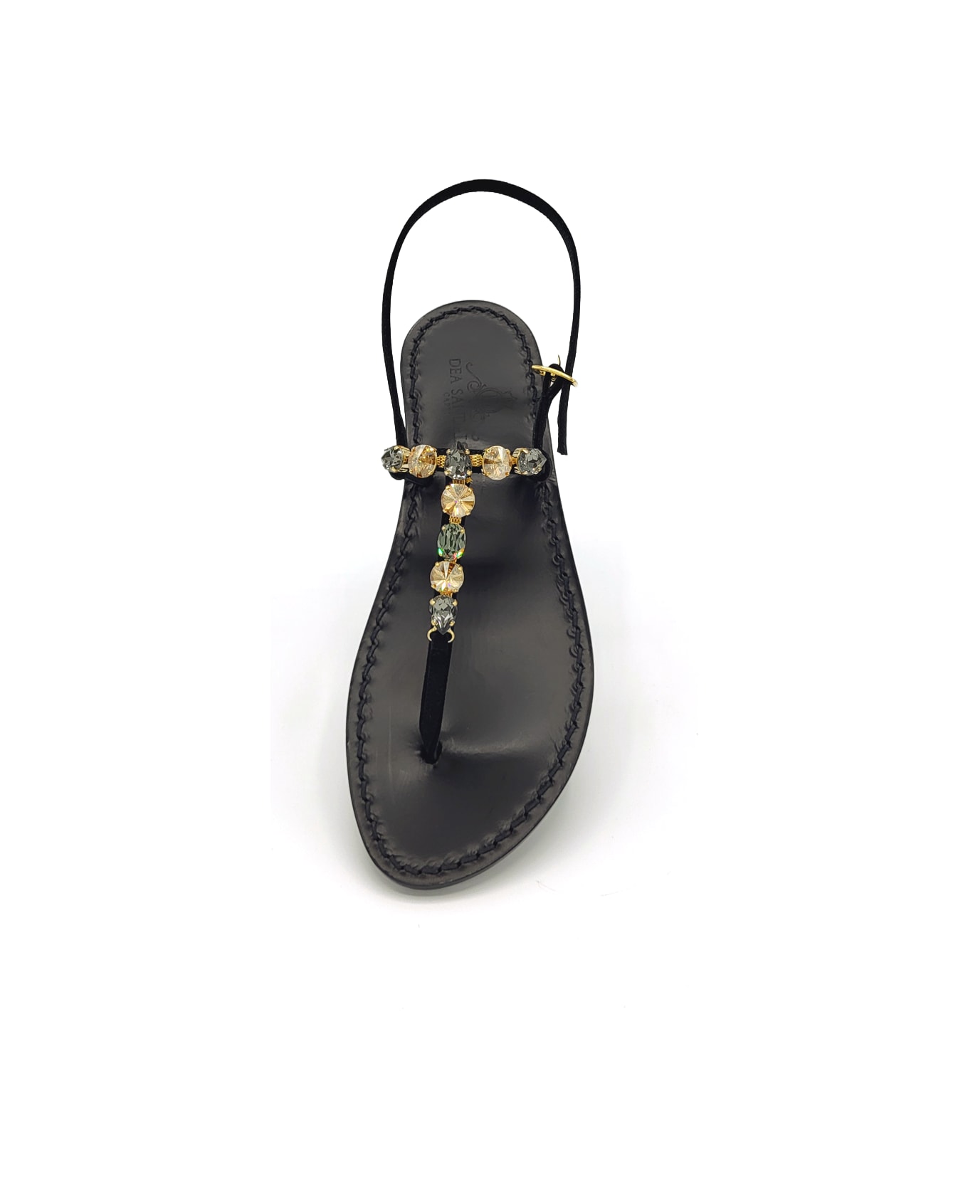 Born and made entirely in Italy, Dea Sandals offers Capri and Jeweled Sandals adorned with custom Swarovski Crystals and semi-precious stones including coral, turquoise, pearls, and more. Considered small masterpieces by the contemporary label, the gleaming and stunning jeweled sandals are created entirely by hand.