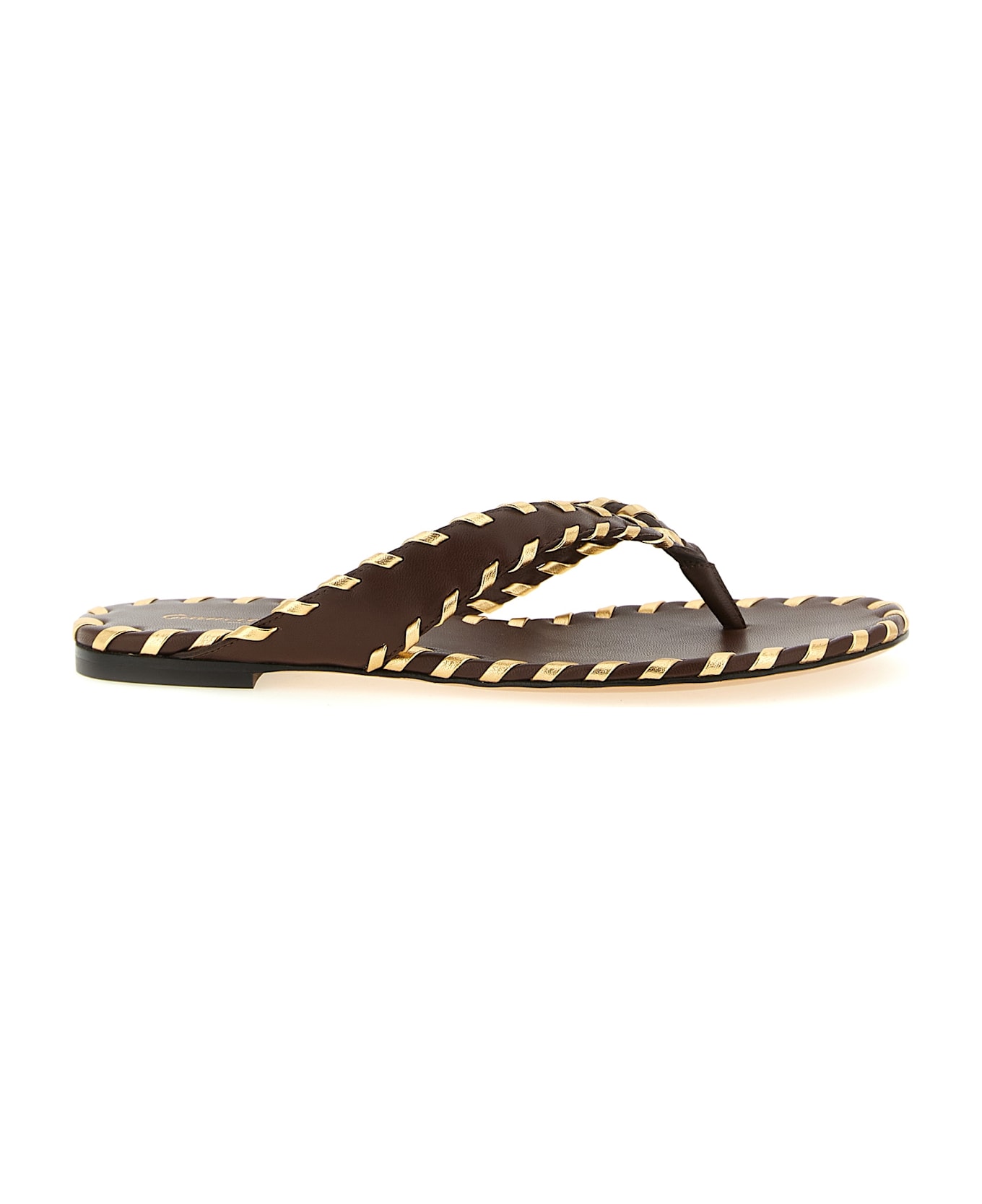'Zaira' silk nappa leather thong woven with laminated mekong nappa leather made with Moroccan weaving technique, flip-flop model, rounded toe, leather sole with non-slip rubber island.