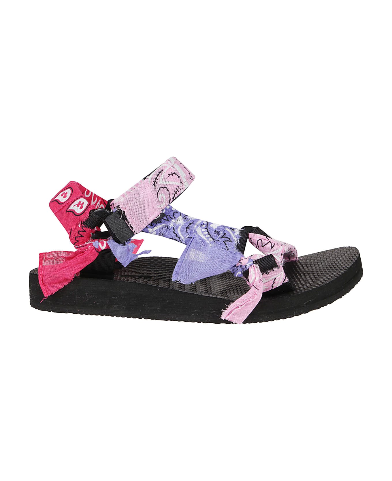 Arizona Love is a line of trekking sandals and accessories defined by bandana wrappings and other tropical embellishments. The vintage cult bandana fabric used for its sandals and accessories is 100% cotton, and each pair is handmade at the brand’s workshops in Paris.