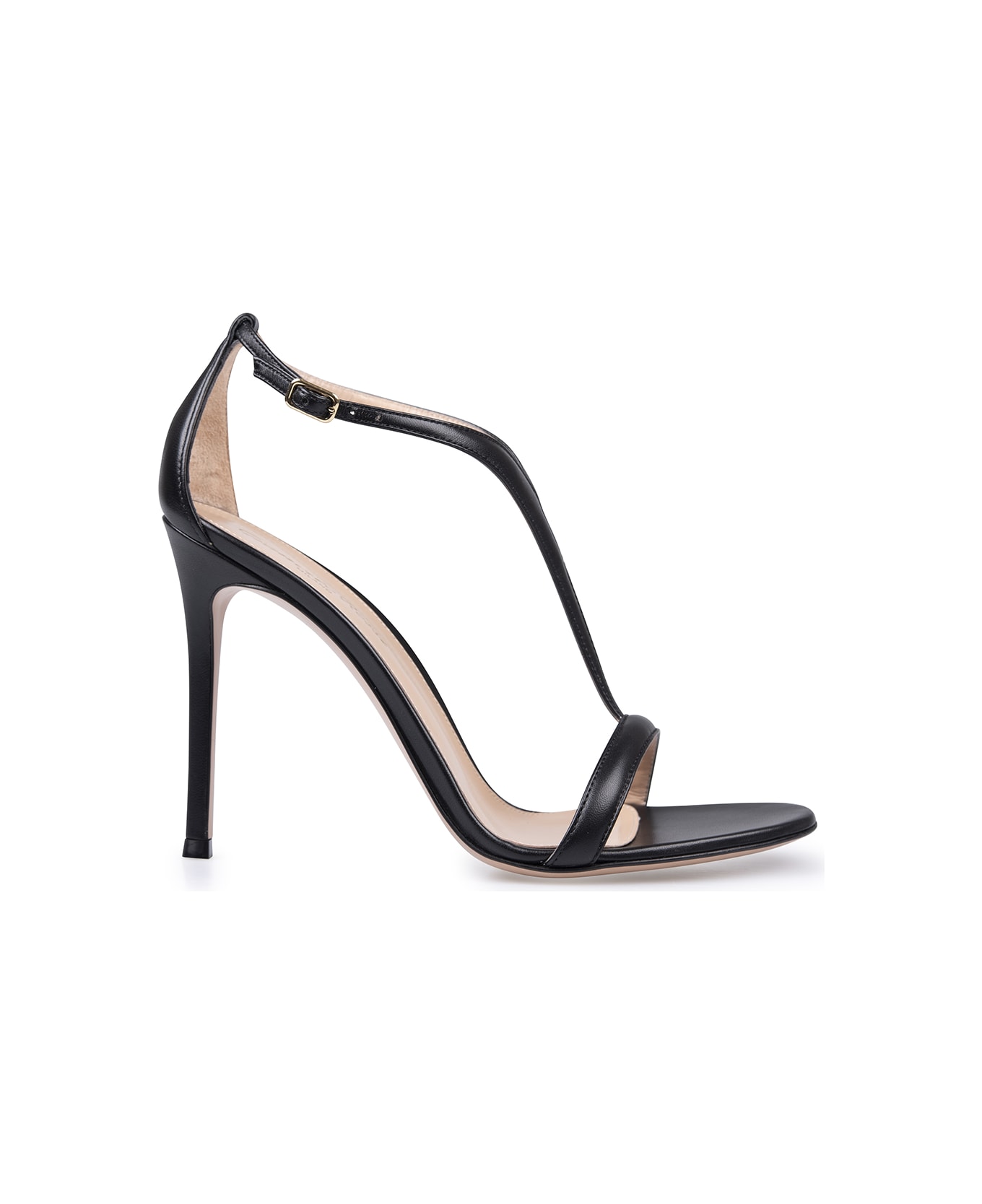 Eiko Stiletto women's high sandal by Gianvito Rossi made of luxurious black smooth leather and characterized by a round toe, a delicate strap that caresses the ankle and slips on the foot, a sensual 105 mm high stiletto heel and ankle strap with buckle to adjust the fit.