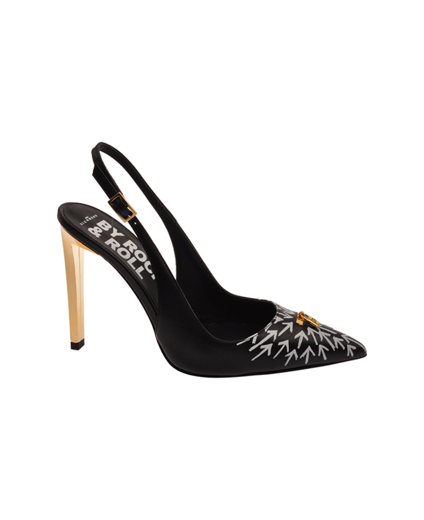 Slingbacks with buckle and pointed toe. Contrast decoration.
