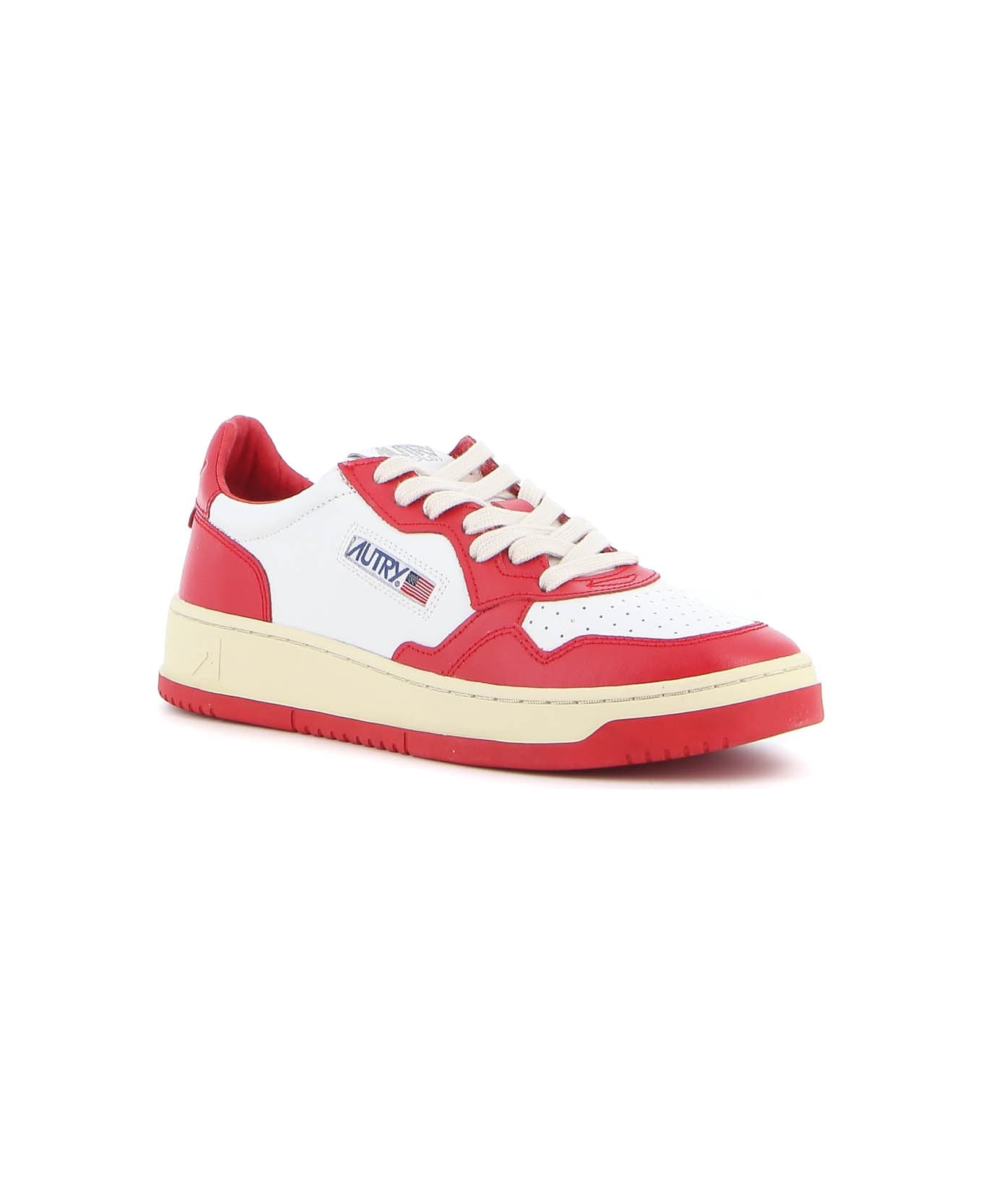 Autry Sneaker in white and red leather, rubber sole, logo detail.