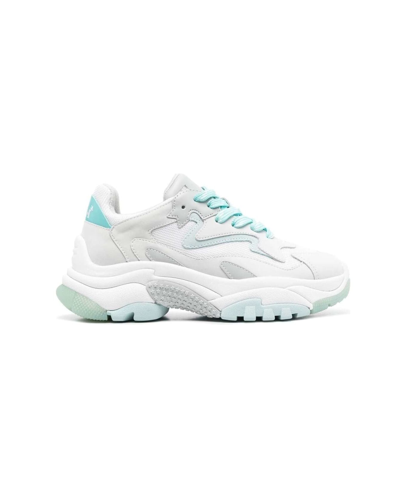 White And Light-blue Sneakers With Logo And Inserts In Cow Leather Woman