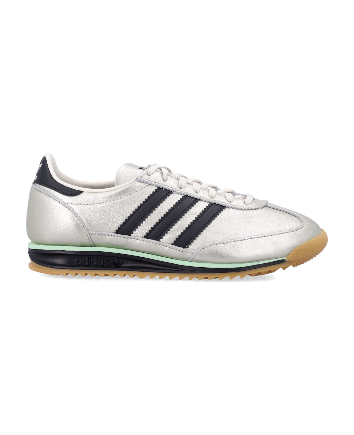 The Adidas Originals Sl72 Og Women's Sneakers Revive A 1970s Running Icon With A Modern Edge. Featuring A Metallic Leather Upper With Opaque Leather Details, They Are Finished With A Classic T-toe And Contrasting 3-stripes. A Textured Ecotex Tongue, Eva Midsole, And Rubber Outsole Ensure Comfort And Lightness, Making Them A Versatile Pair That Blends Sports Heritage With Today's Urban Style. Nylon Upper With Suede And Leather Details T-toe Design Lace-up Fastening Textured Ecotex Tongue Lightweight Eva Midsole Rubber Outsole In Platinum With Black Iconic 3-stripes