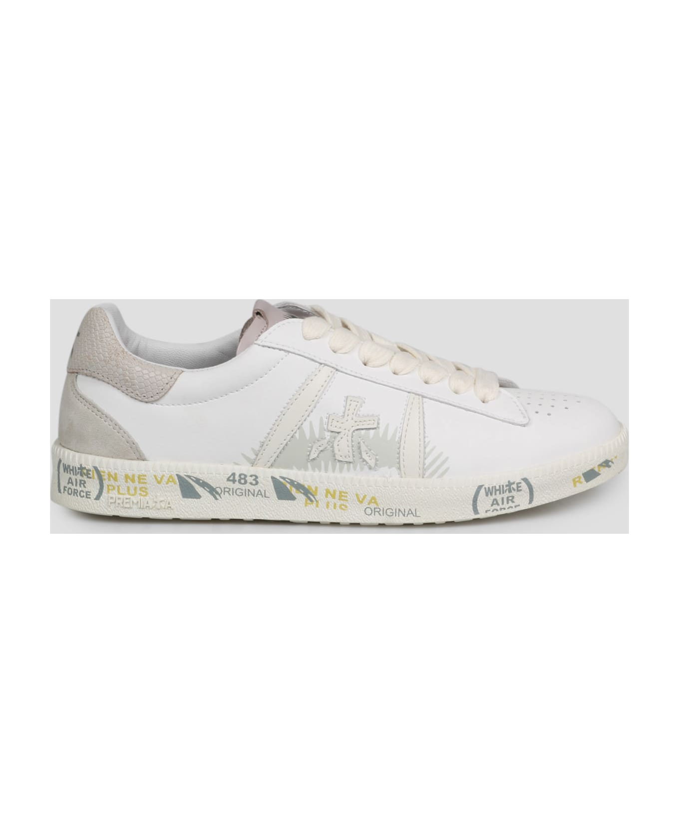 Premiata Andyd sneakers, in smooth leather with contrasting details. - SS23 - Perforated round toe - Lace up - Logo print on the front tongue - Istrice logo print on the sides - Contrasting back insert with logo print - Rubber sole - Made in Vietnam - Calf leather