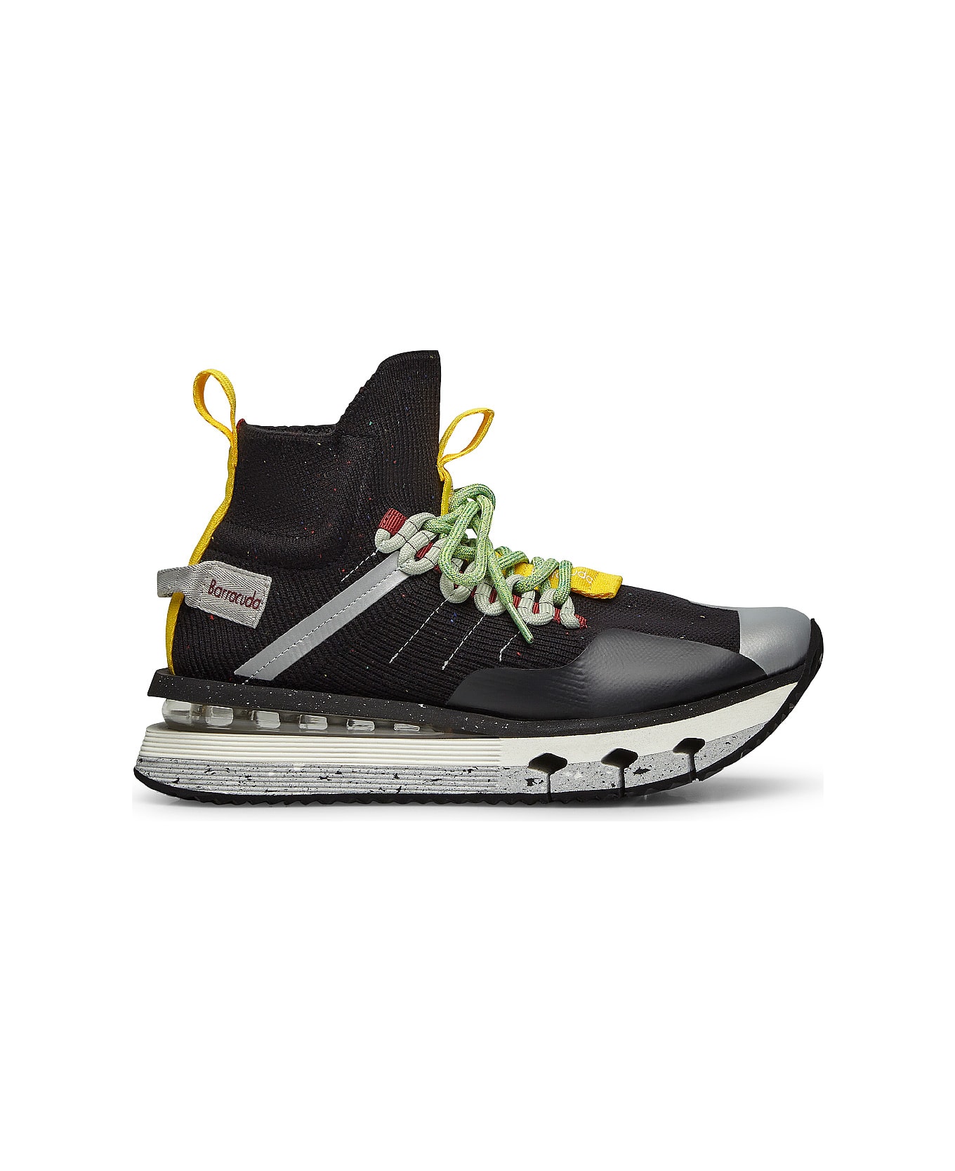 the new barracuda nikho mid-version made from a blend of technical fabrics. our running sneaker has a reduced environmental impact thanks to the multicoloured recycled micro sole and rubber outsole, enhanced by a layer of highly elastic material in the midsole to offer maximum comfort. colour: black material: fabric