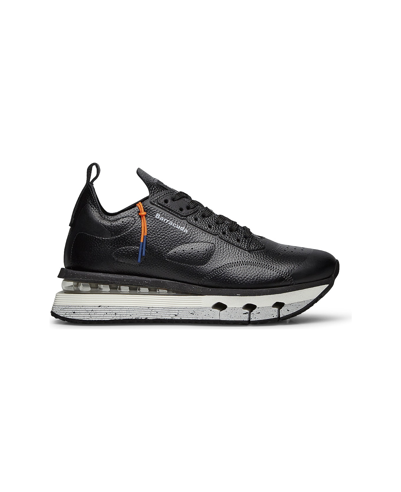 barracuda nikho in calfskin. this sneaker has a reduced environmental impact thanks to the multicoloured recycled micro sole and rubber outsole, enhanced by a layer of highly elastic material in the midsole to offer maximum comfort. colour: black material: nappa leather