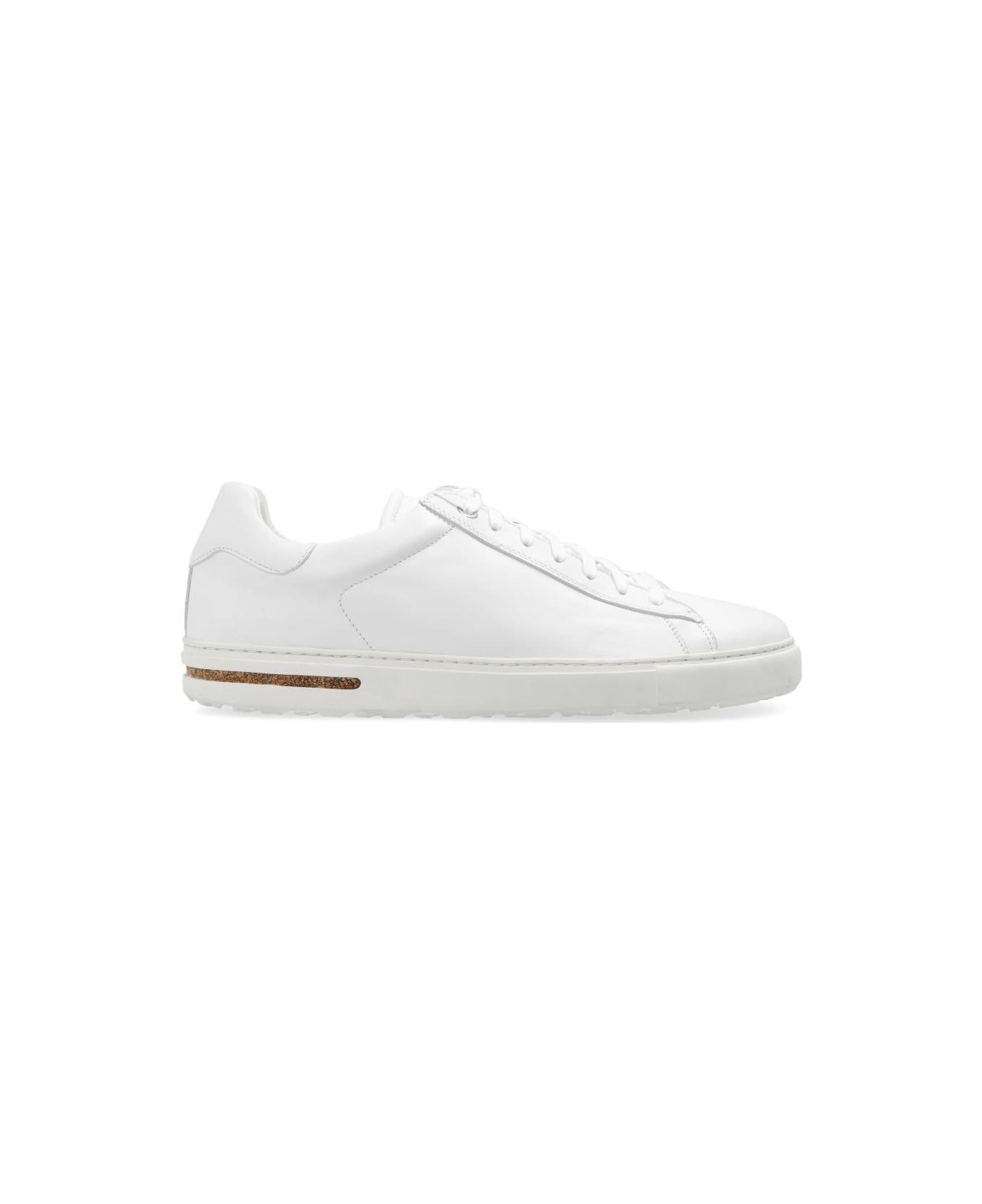 White 'Bend Low' sneakers from Birkenstock. Made of leather, this lace-up pair features a logo embossed on the tongue and side as well as a removable, anatomically shaped cork-latex footbed. An additional midsole made of PU and cork ensures optimum shock