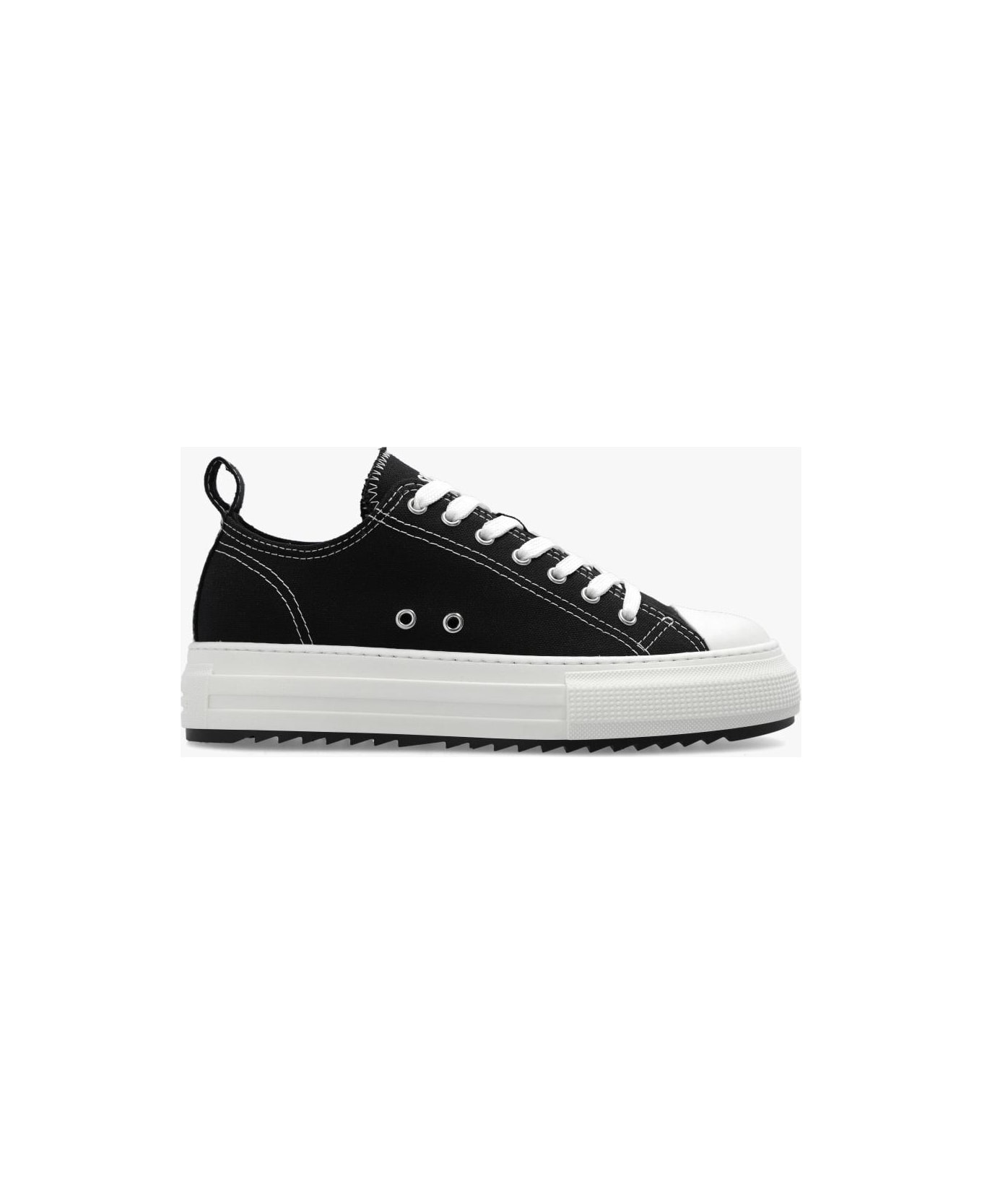 Black and white 'Berlin' sneakers from Dsquared2. Resting on a black rubber sole, this lace-up pair is decorated with logo details.