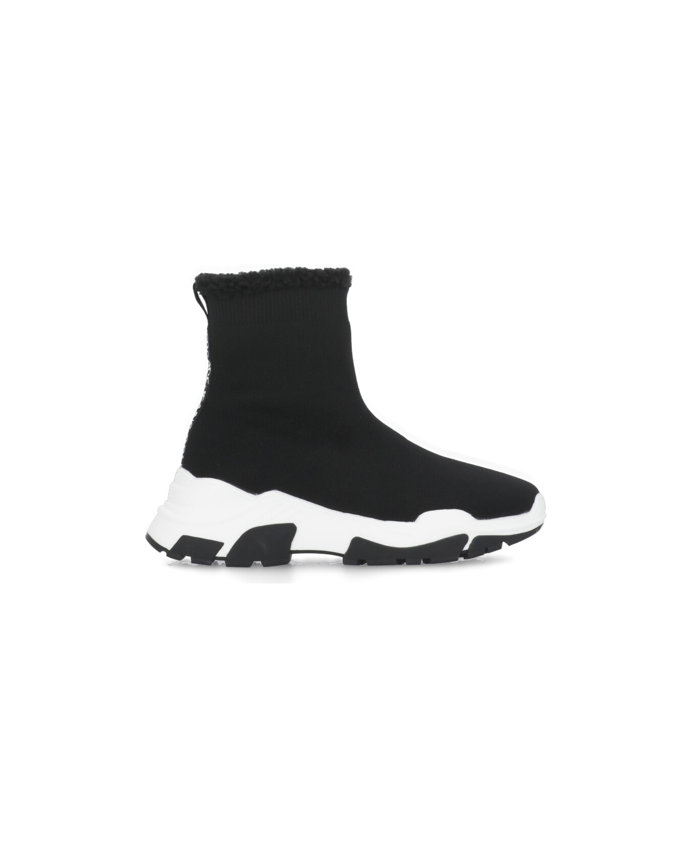 Berry Sneakers from Versace Jeans Couture: - Black Versace Jeans Couture leather and fabric sneakers for woman - Round toe - Rear contrasting color logo - Height: 16 cm
