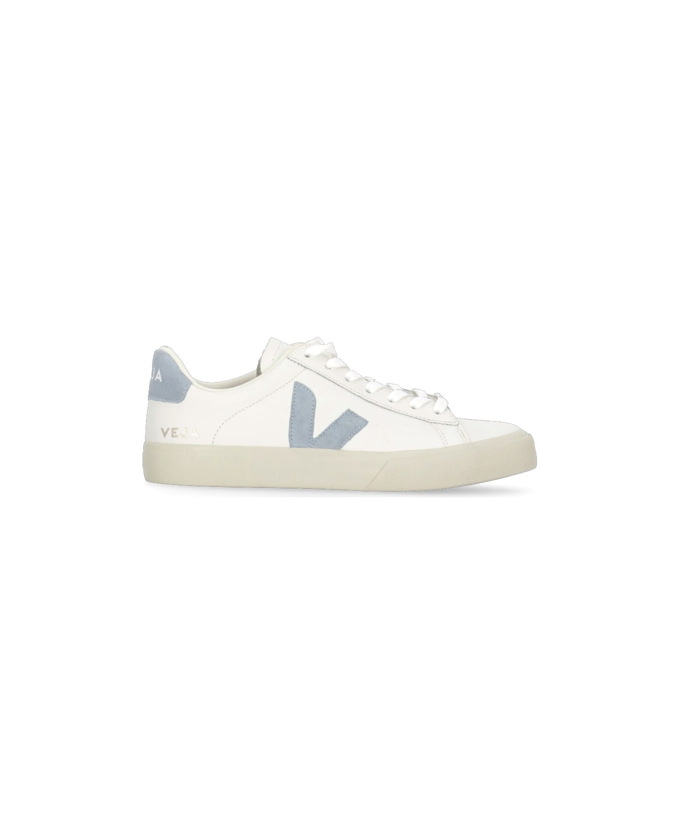 - White Veja leather sneakers for woman - Round toe - Front laces fastening - Logoed tongue - Side contrasting color suede leather V logo - Contrasting color suede leather logoed upper heel - Rubber sole