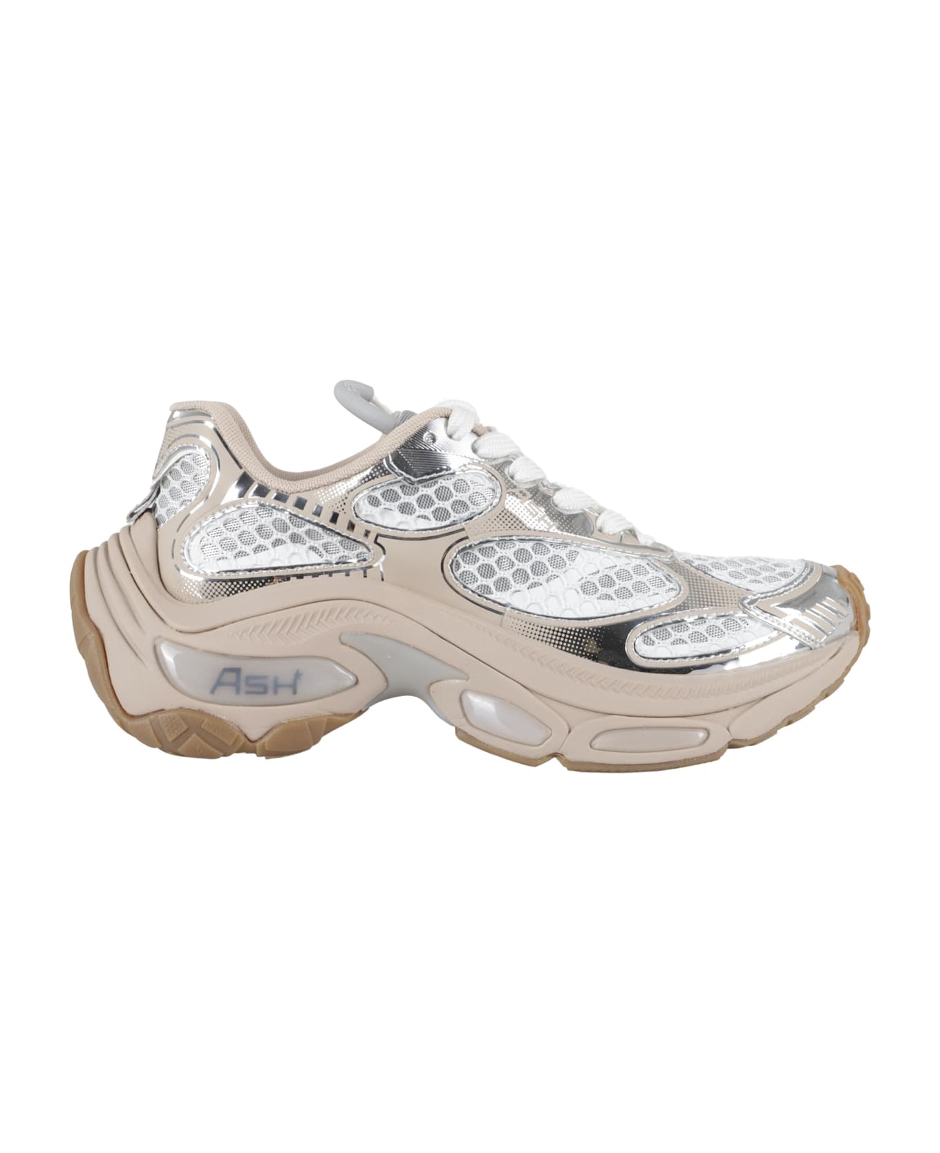 Dragon sneakers - Ash - mirror silver white color - mesh and rubber upper - chunky rubber sole - pull-tab on tongue - round toe - cotton laces