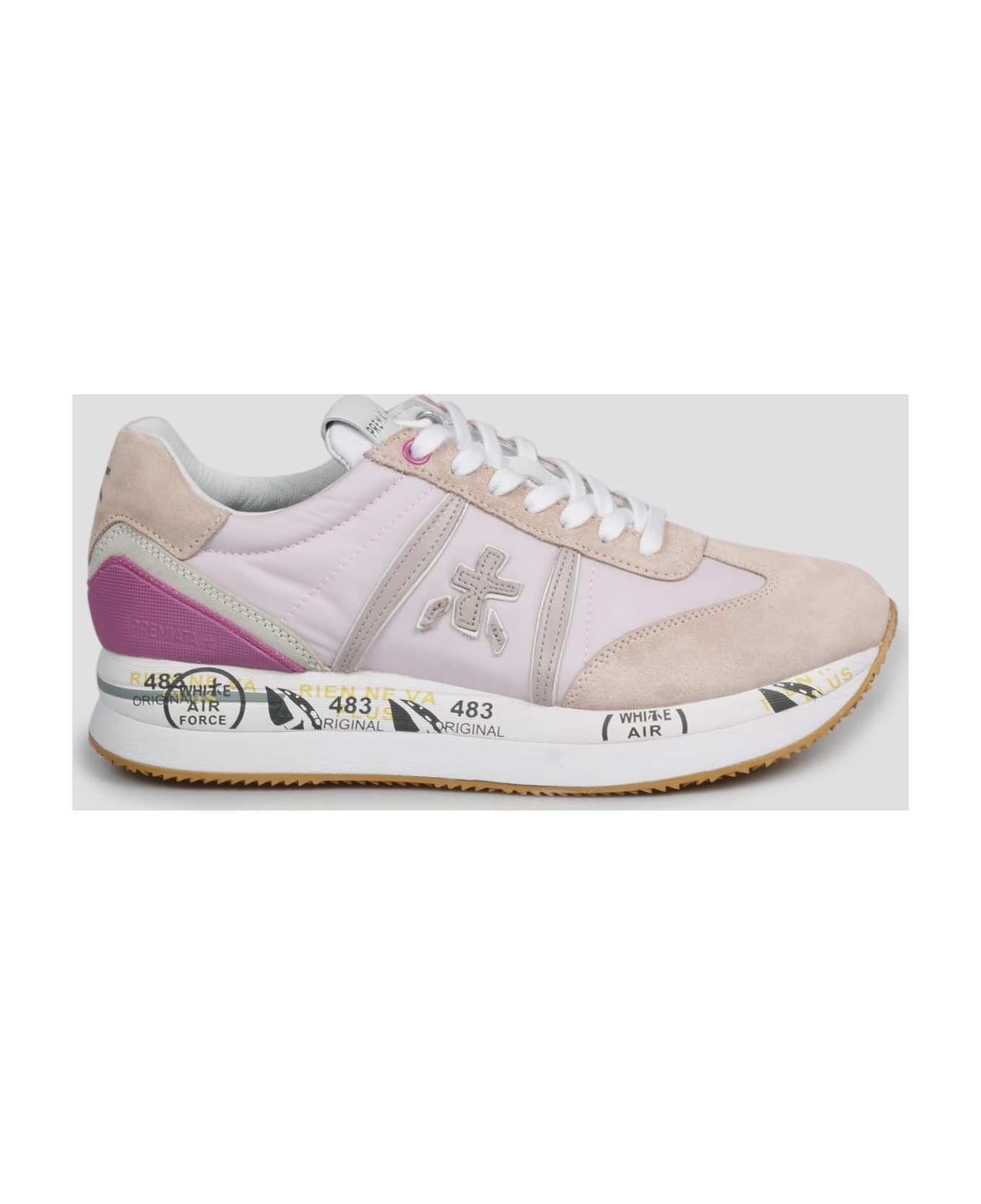Conny sneakers by Premiata, in nylon and suede. - SS23 - Suede inserts - Leather logo on the sides - Rounded toe - Lace up - Platform rubber sole with print - Made in Vietnam - 50% Polyamide, 40% Calfleather, 10% Polyurethane