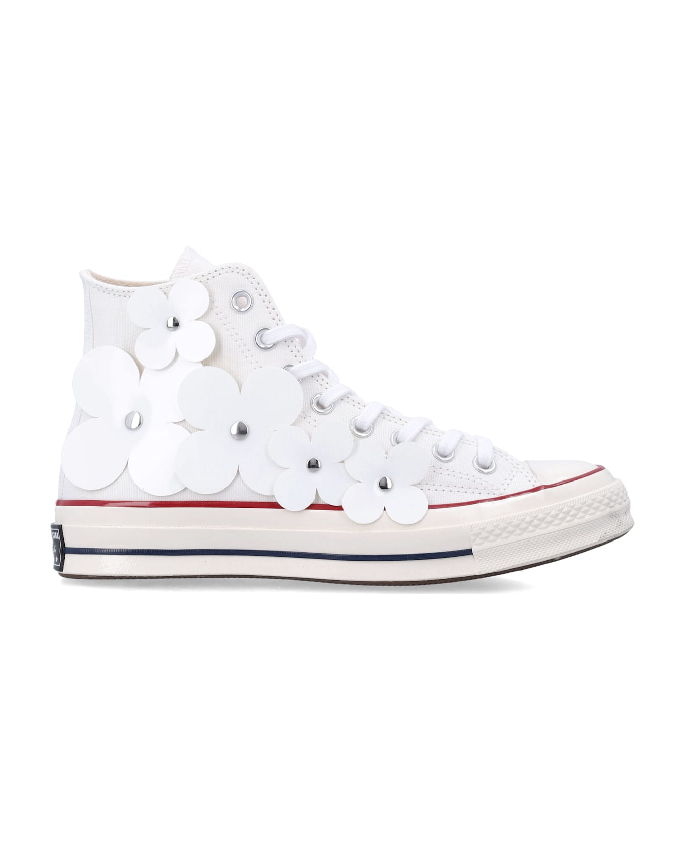 The Converse Chuck 70 3-d Flourish Sneakers Bring A Playful Update To The Classic Silhouette With Translucent Floral Details Extending Beyond The Canvas. Crafted With A Durable Canvas Upper, Ortholite Cushioning, And Secured Flower Rivets, These Sneakers Combine Comfort And Elevated Style. Iconic Chuck Taylor Ankle Patch And Vintage All Star License Plate Complete The Look. Durable Canvas Upper Translucent 3-d Floral Embellishments With Rivet Closure Lace-up Fastening Rubber Toe Cap Ortholite Cushioned Insole For All-day Comfort Iconic Chuck Taylor Ankle Patch Vintage All Star License Plate Rubber Sole