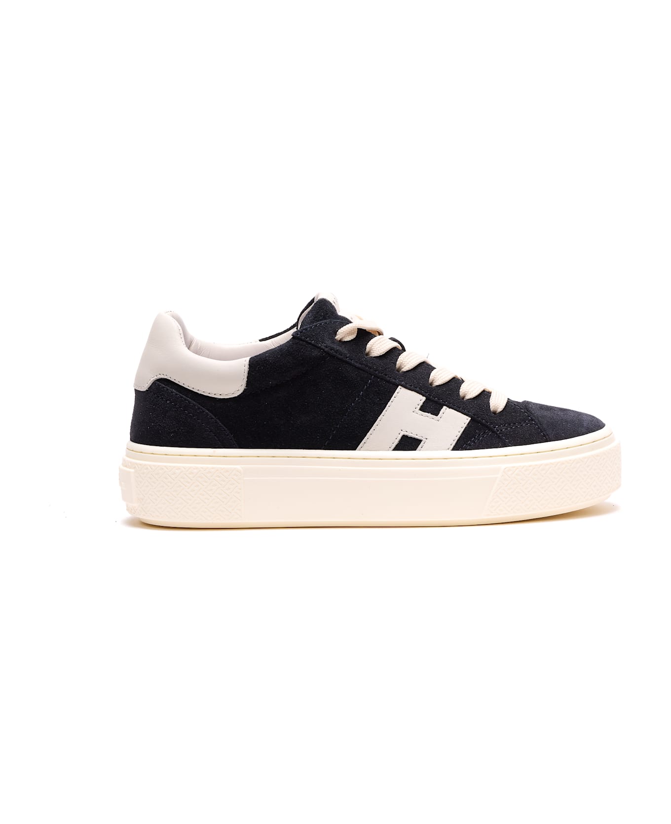 Hogan black Crosswind platform sneakers, round toe, lateral H logo, suede upper
