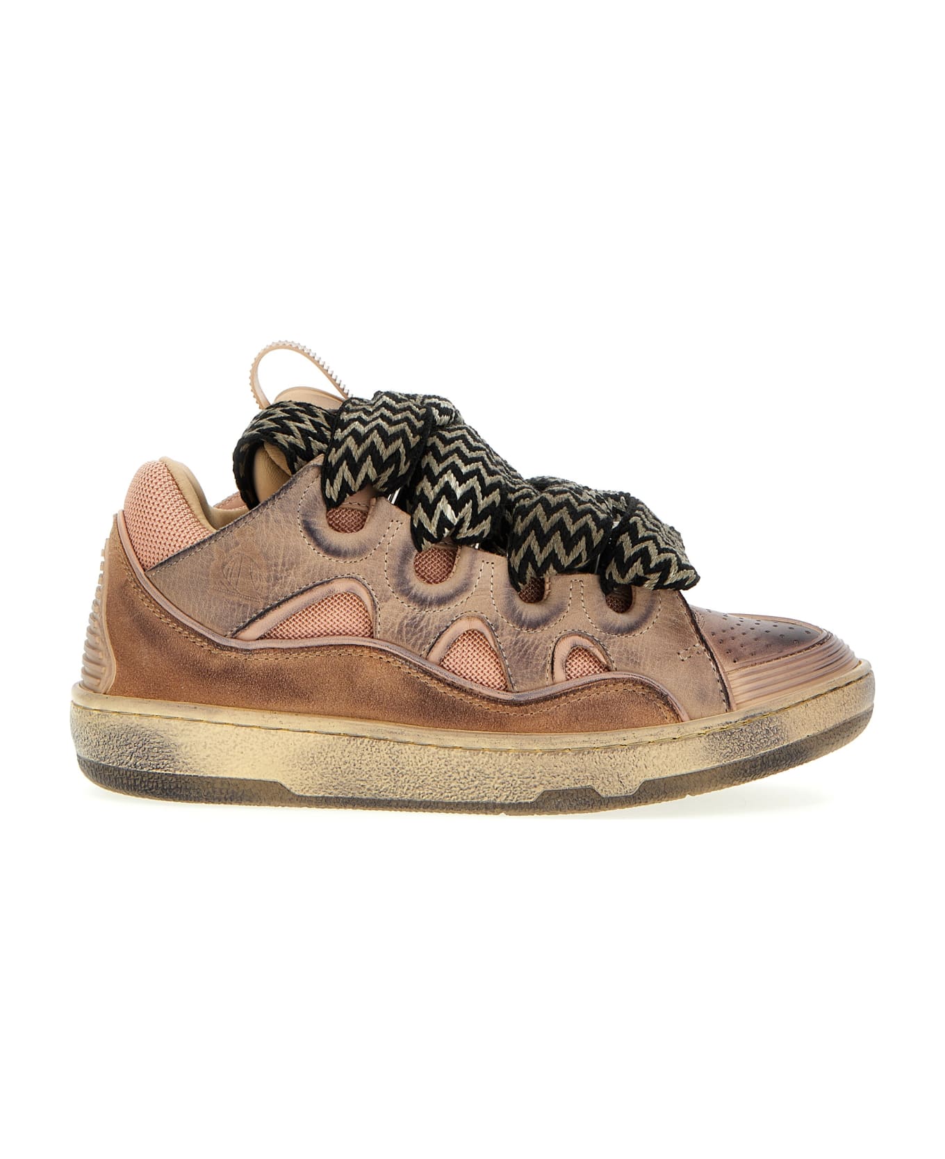 Curb sneakers in leather, suede and dirty-effect mesh fabric with oversized laces, and rubber sole. Composition: