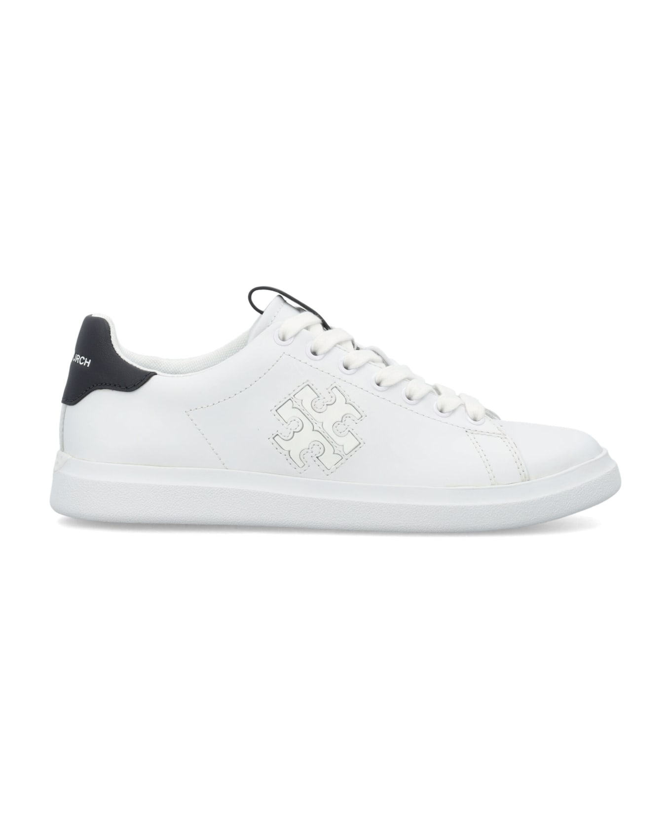 Double T Howell Court Sneakers By Tory Burch. Featuring: Leather Upper Round Toe Lace-up Fastening Contrast Logo Label At Tongue Contrast Heel Counter With Logo Print Mesh Lining Cushioned Midsole Eva And Rubber Sole