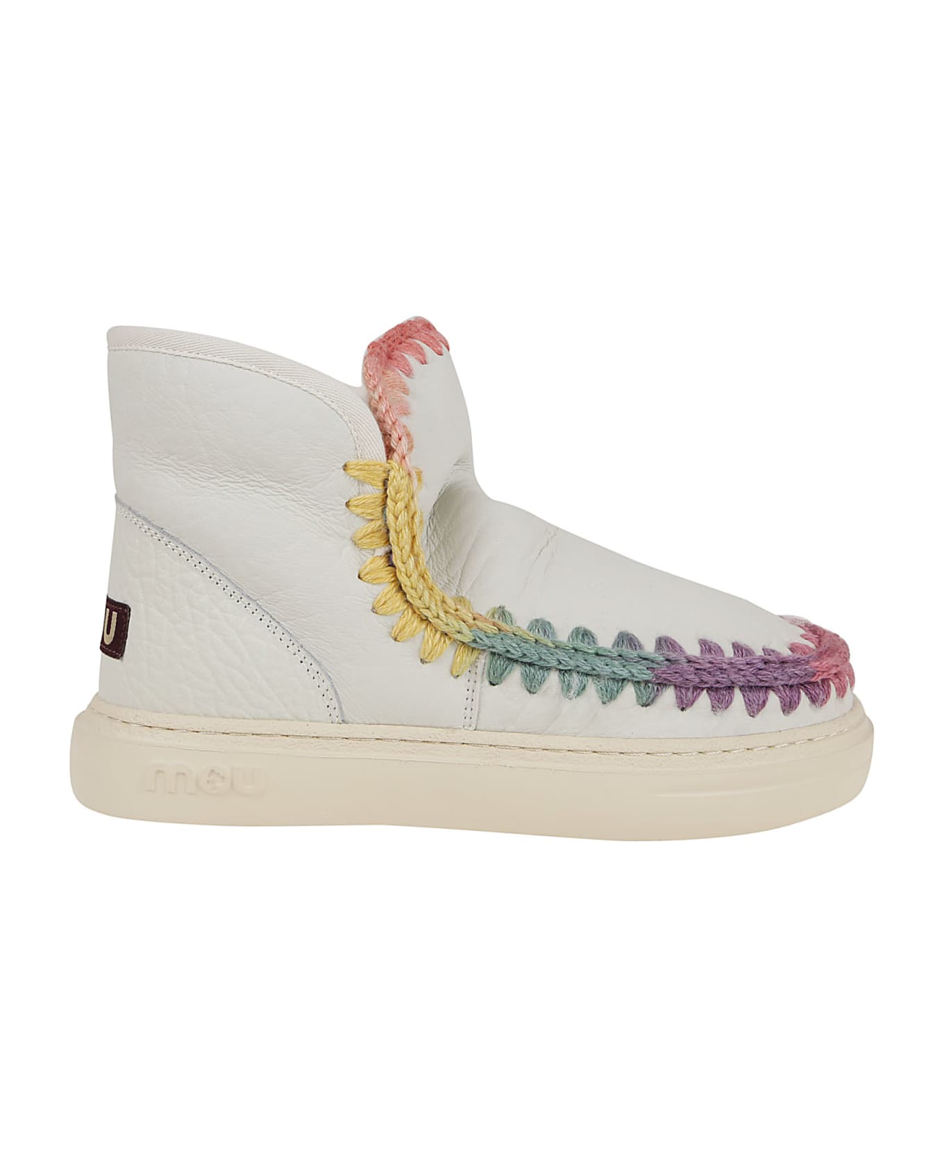 Eskimo bold sneaker in double face sheepskin; durable and soft rubber sole. Featuring rainbow-colored crochet details. H15. 5cm Ideal to be worn on a cold winter day, for a casual, warm and trendy outfit!