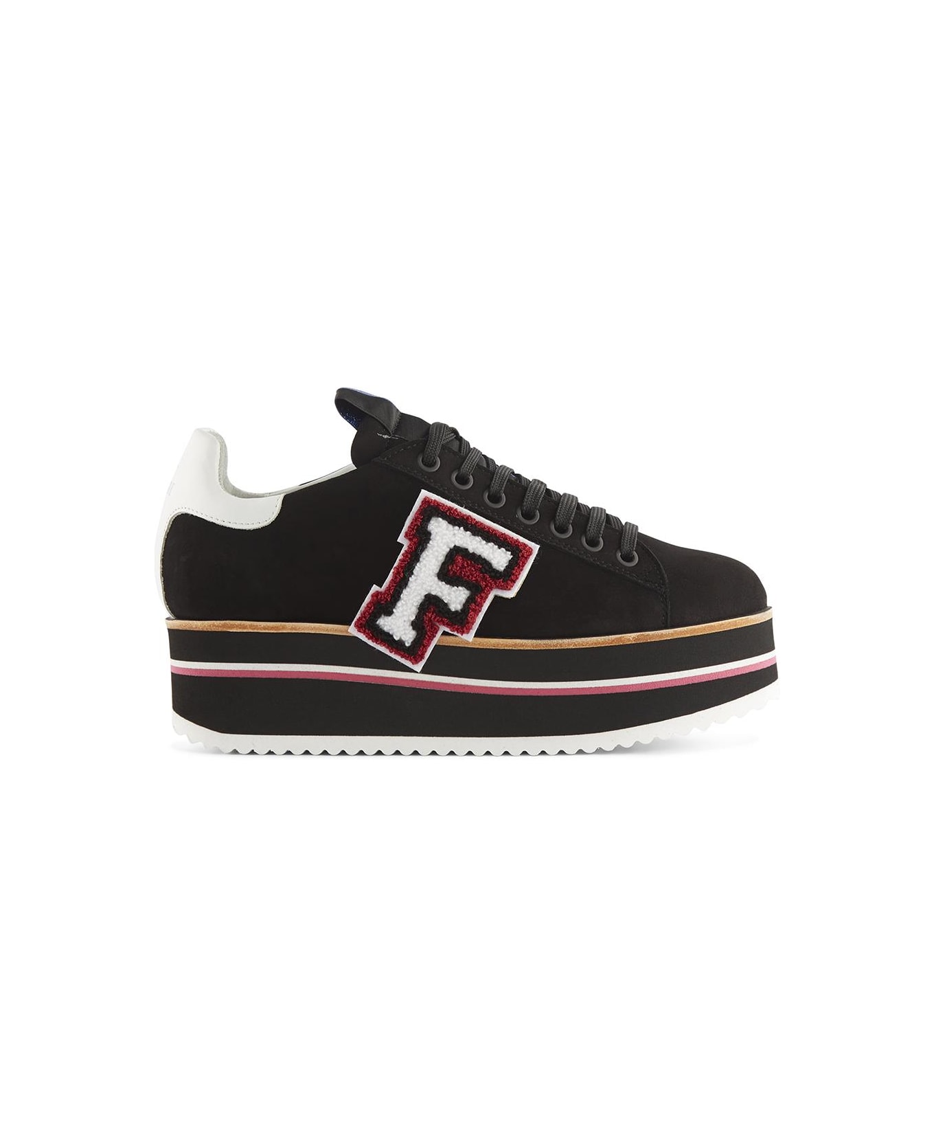fabi presents his first project of sneaker with large volumes, with a 5 cm platformer sole. a sports shoe with urban dna in line with new trends. made in various colors, it is available in suede and laminate versions. embellished with a lateral college style maxilogue. removable fussbett in leather.