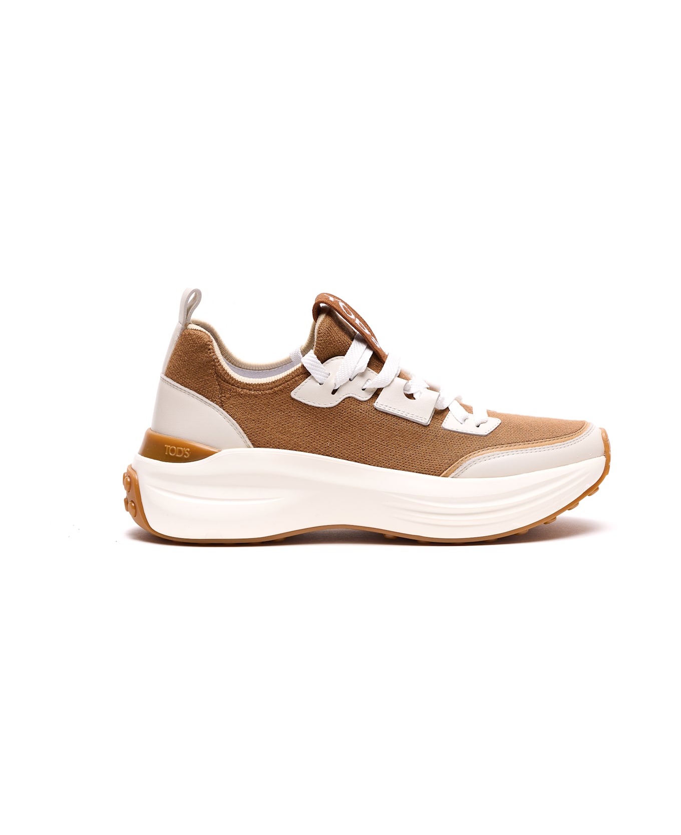 Tod's brown Fabric and leather sneakers, round toe, laces closure, leather and fabric upper