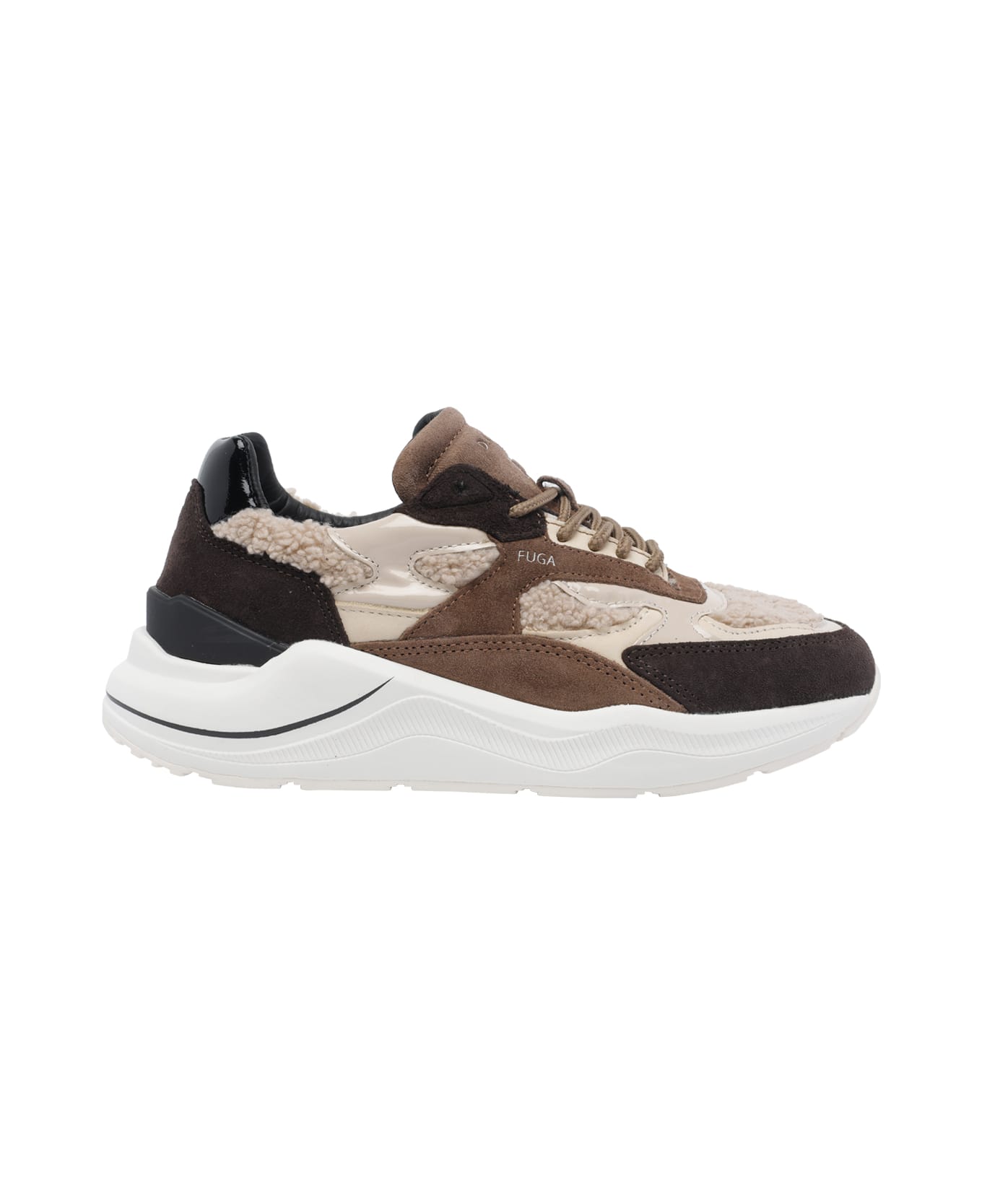D. A. T. E. Fuga Natural sneakers chocolate, round toe, lace closure, logo on side, fabric upper, rubber sole