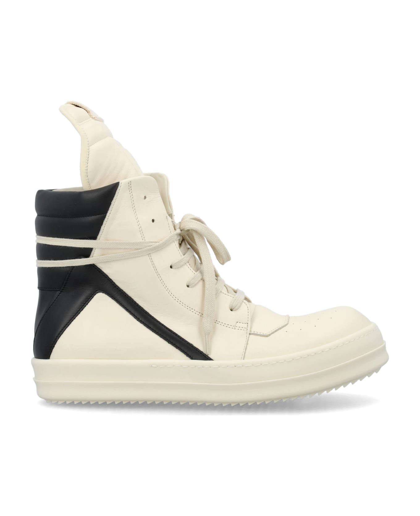 Smooth Leather Geobasket Women By Rick Owens. Featuring: Above Ankle Height Eyelets And Laces Padded Collar Extended Tongue Side Zip Fastening Round Toe Shark-tooth Sole
