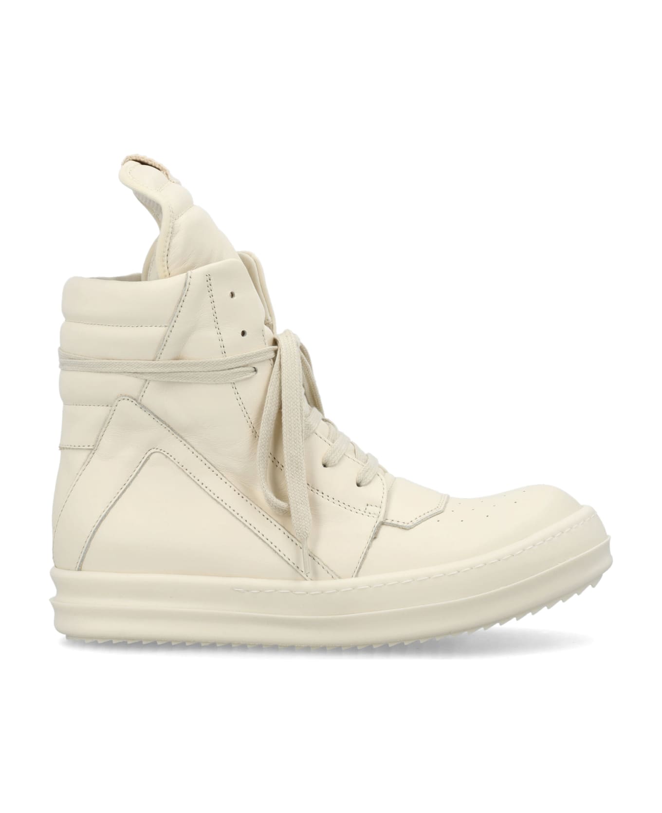 Smooth Leather Geobasket Women By Rick Owens. Featuring: Above Ankle Height Eyelets And Laces Padded Collar Extended Tongue Side Zip Fastening Round Toe Shark-tooth Sole