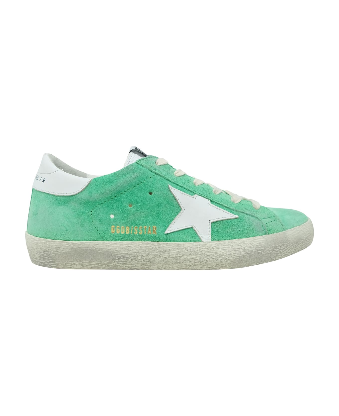GOLDEN GOOSE GWF00101. F002575. 35774 GREEN SUEDE SUPERSTAR SNEAKERS, product code GWF00101. F002575. 35774, style name SUPERSTAR SNEAKERS, color GREEN, material SUEDE, season CARRY OVER