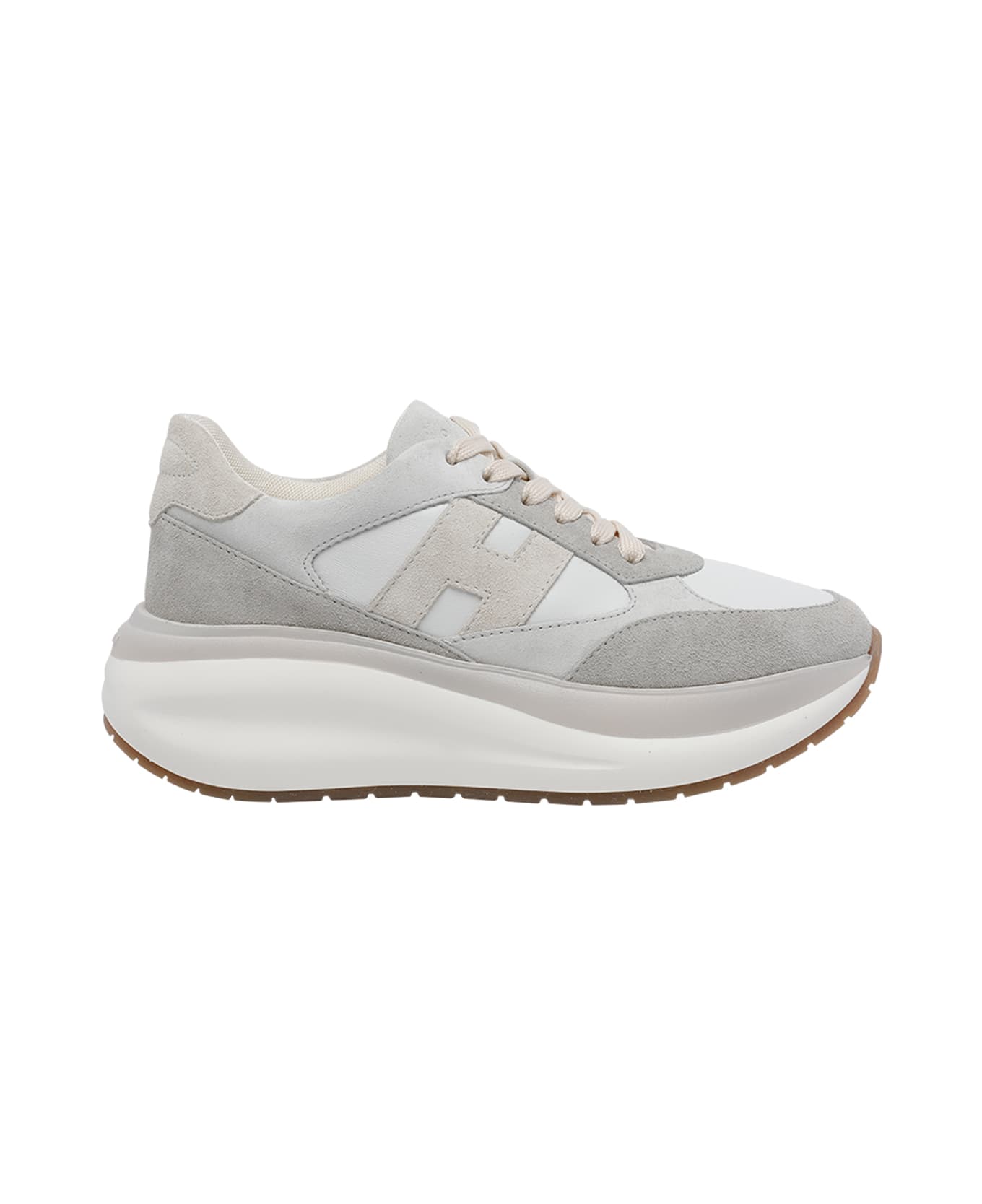 Hogan grey H714 sneakers, laces closure, round toe, fabric and suede upper, lateral logo Composition: 100% Suede Leather, 100% Fabric/rubber Sole