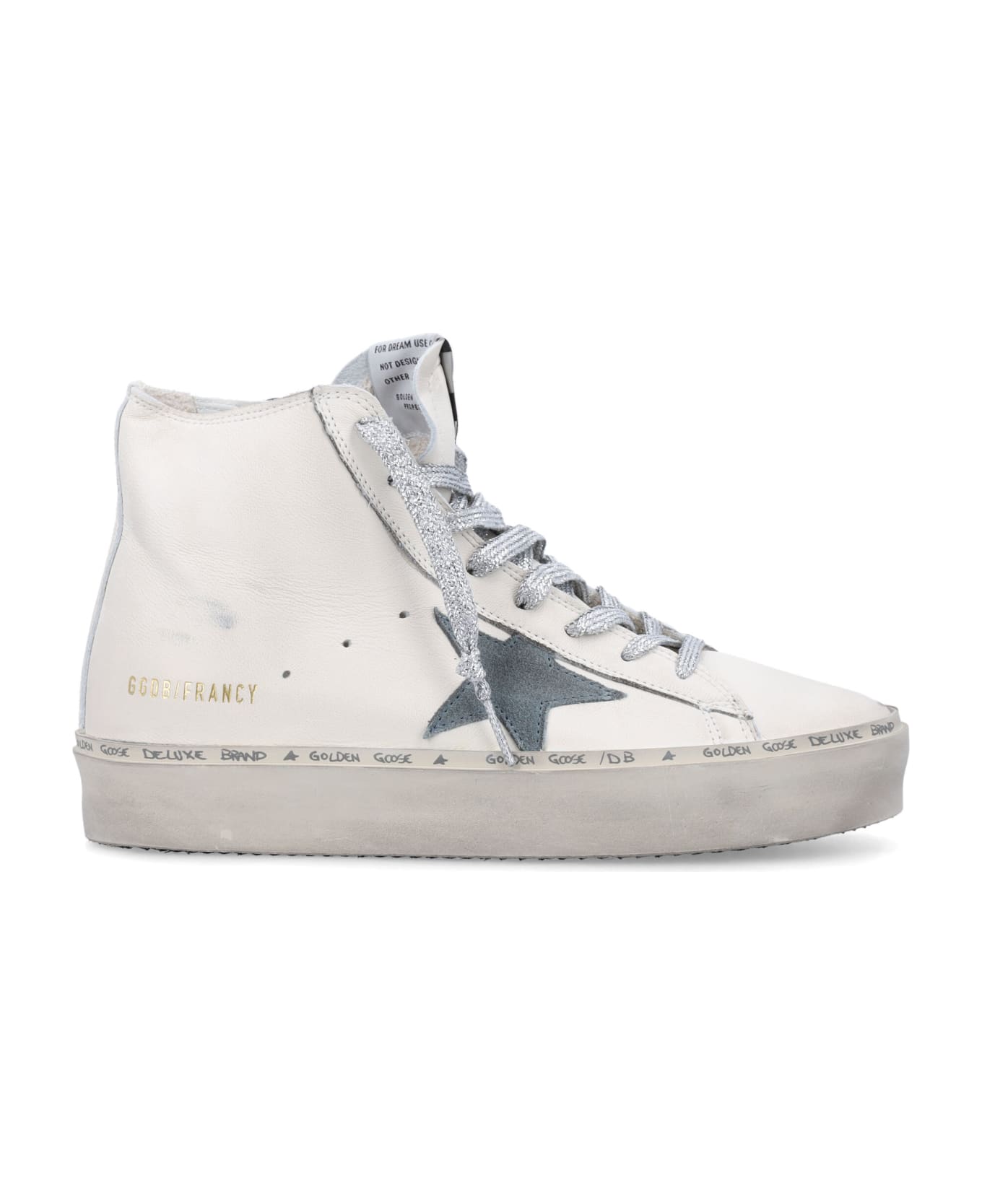 Hi Fancy Sneakers By Golden Goose. Featuring: Leather Construction Iconic Star Detail With Embossed Texture Rose Gold-tone Heel Tab Distressed Effects Lace-up Front Rubber Sole Padded Collar