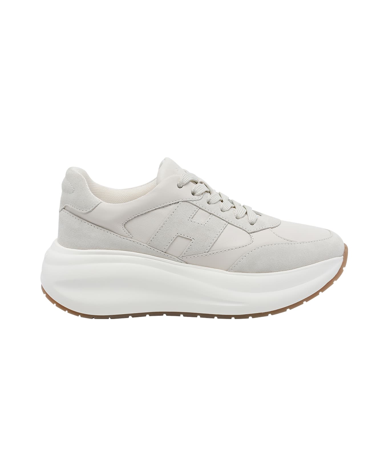 Hogan white Hogan maxi sneakers, laces closure, lateral logo, leather and suede upper, round toe
