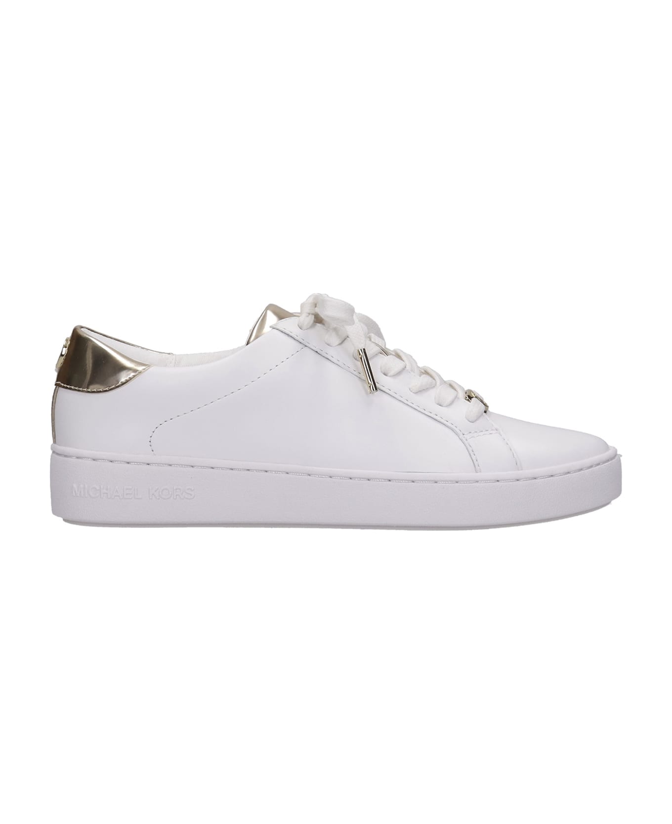 Irving Sneakers in white leather, laces, logo on heel, metal leather detail, gold hardware, 100% leather, rubber outsole, Made in Vietnam