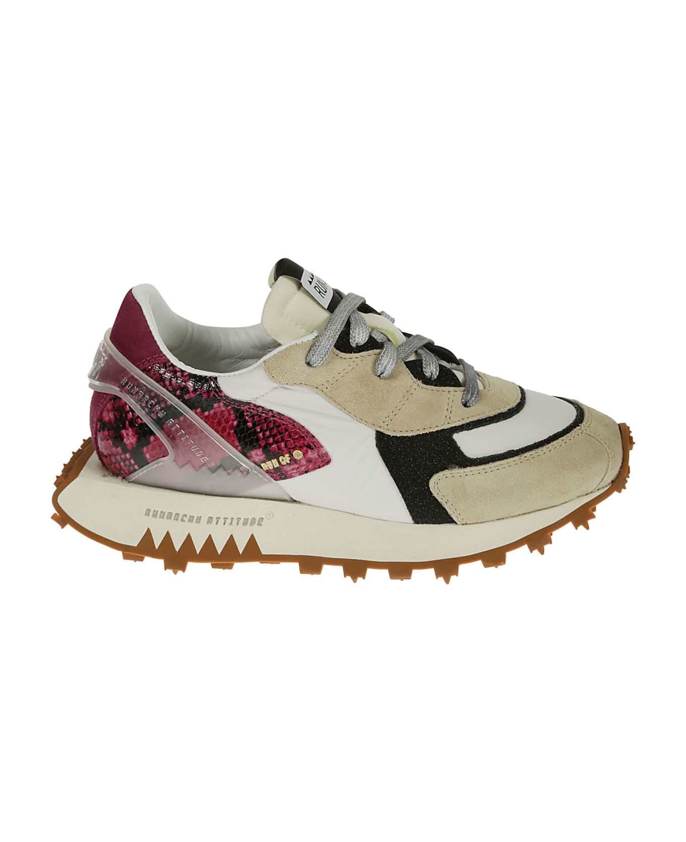Run Of Sneaker in beige suede, white leather inserts, rubber application at the back, rubber lug sole.