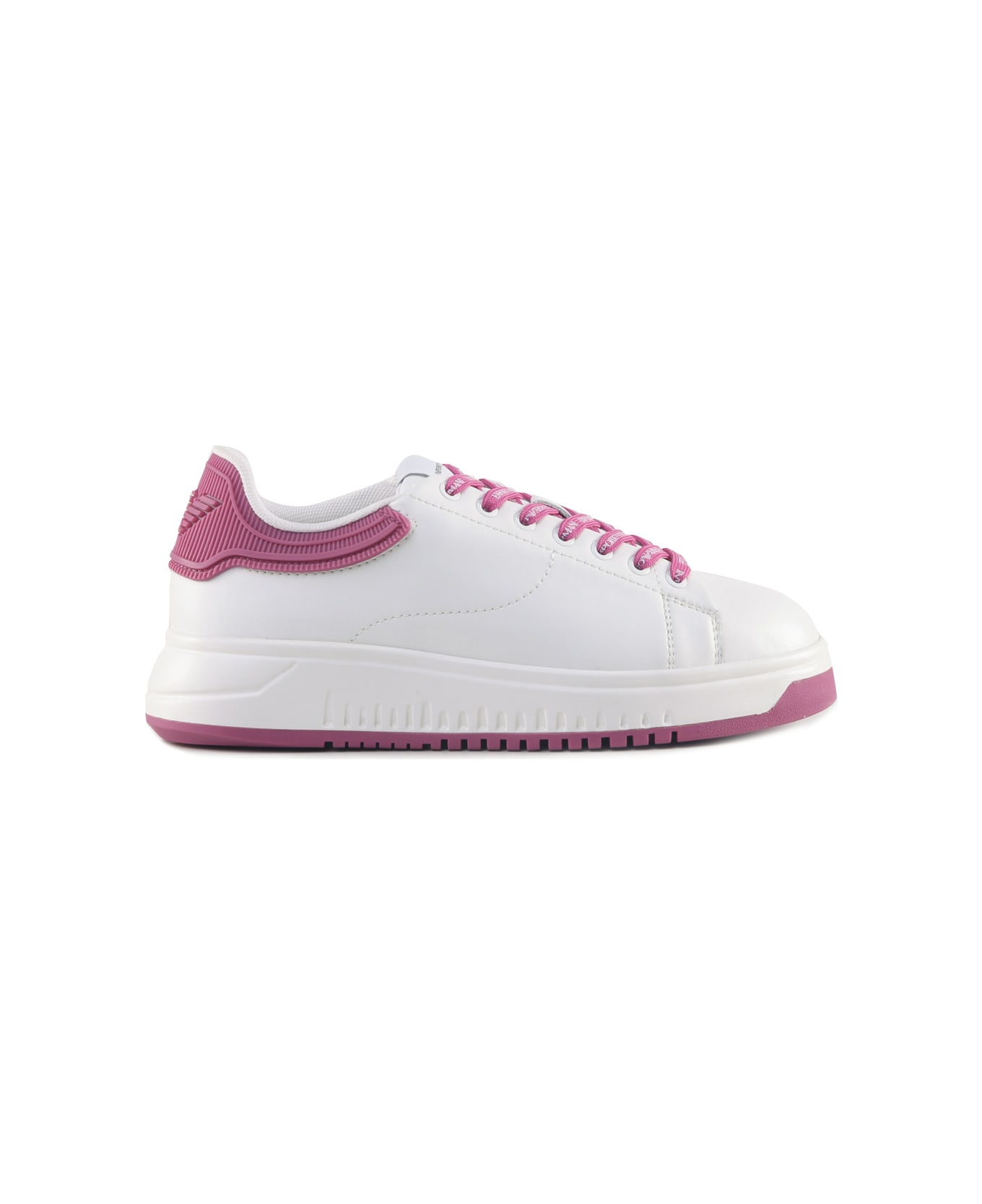 White+pink Leather Sneakers With Rubberized Back from Emporio Armani