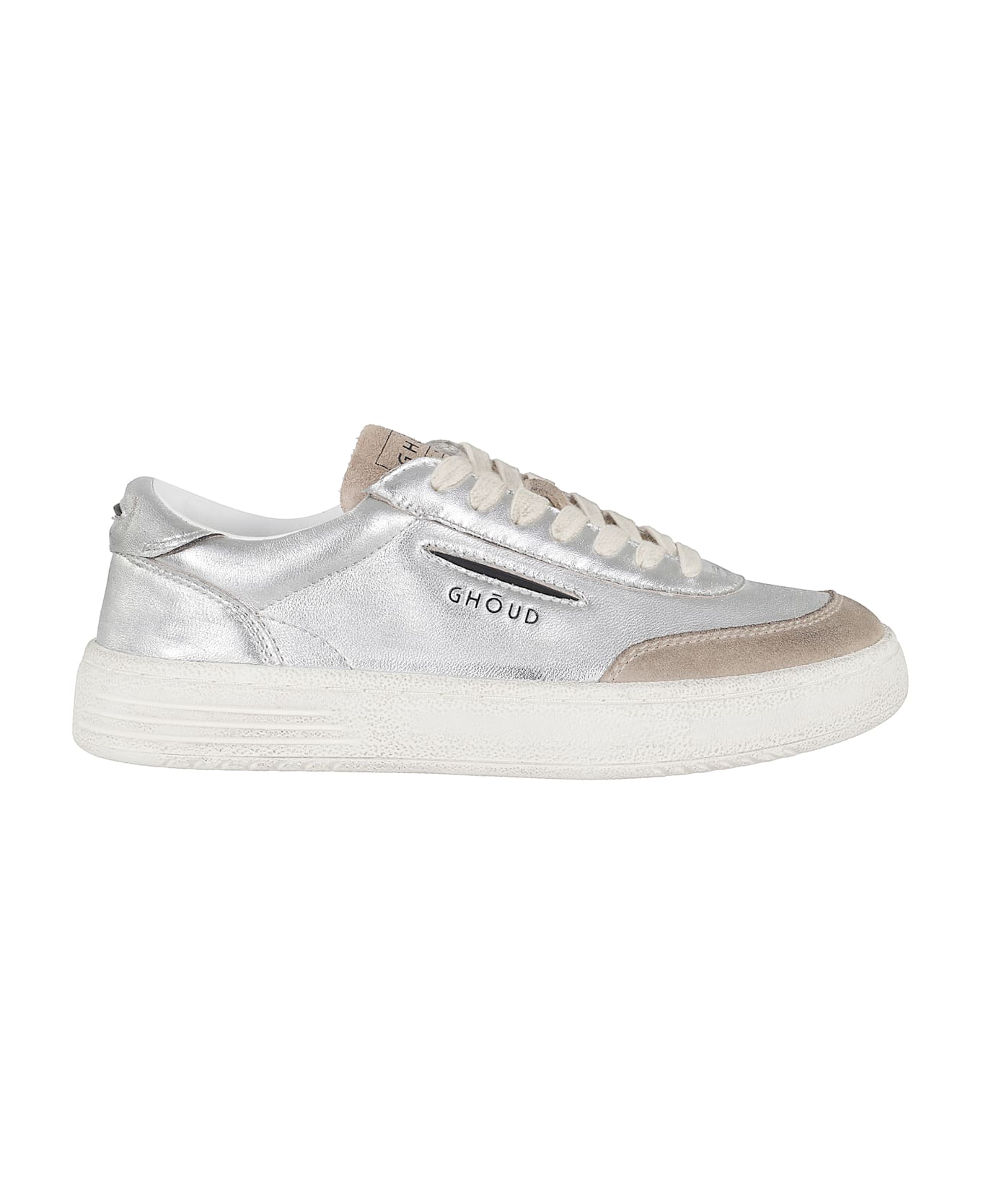 Lido Low sneakers - Ghoud - Silver color - Laminated leather upper - Round toe with suede insert - Suede tongue with printed logo - Contrasting side logo - Lace-up closure - Rubber sole.