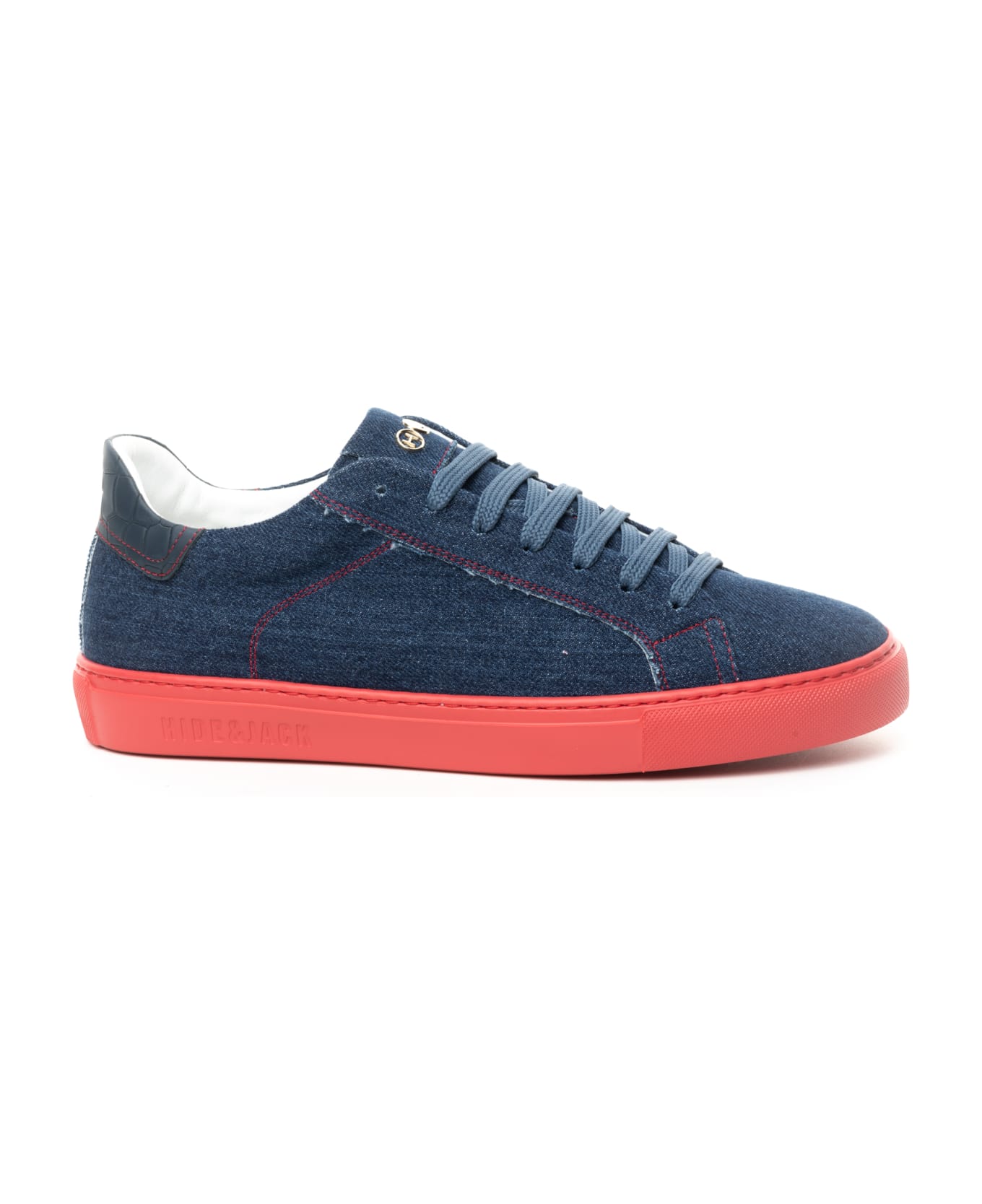 Low Top Sneaker in 100% Jeans Textile Blue with Red Sole