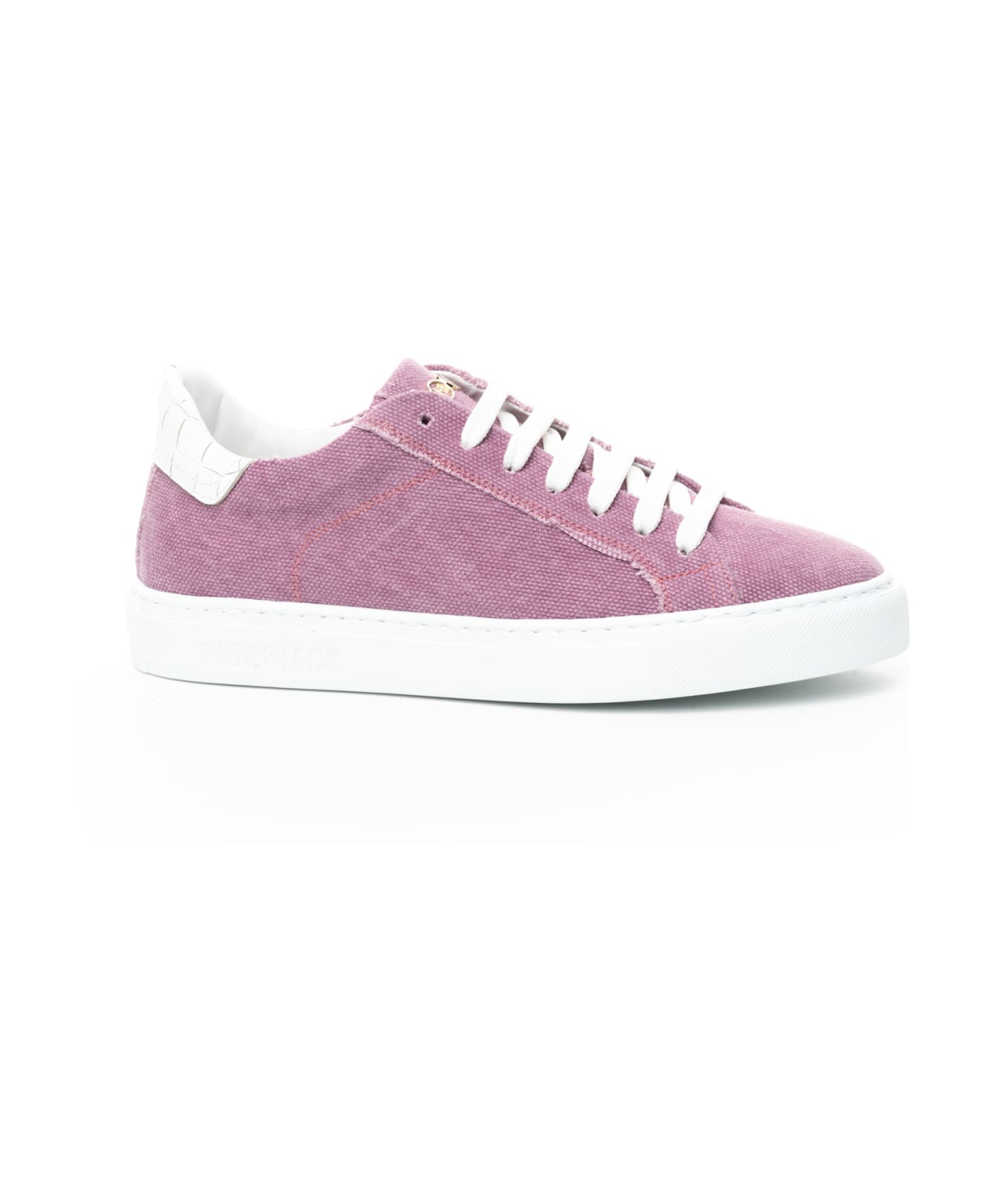 Low Top Sneaker in 100% Jeans Textile Pink with White Sole