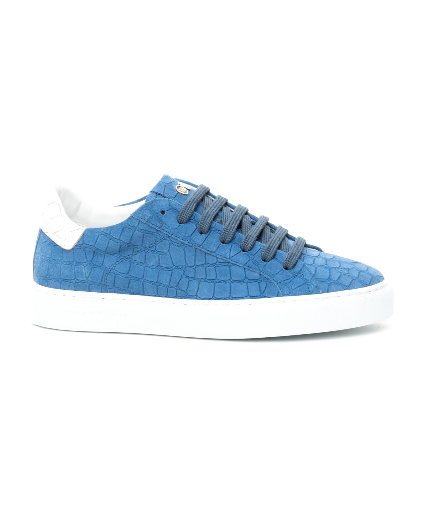 Low Top Sneaker in 100% Suede Leather printed Mirtillo Croco with White Sole