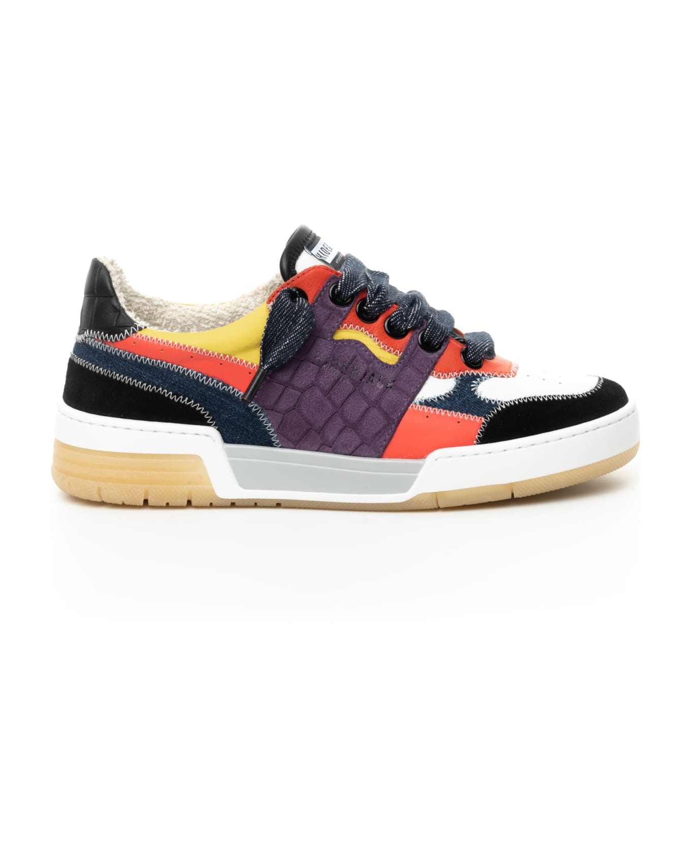 Low Top Sneaker in Calf/Suede/Nylon Mix Colour and White Sole