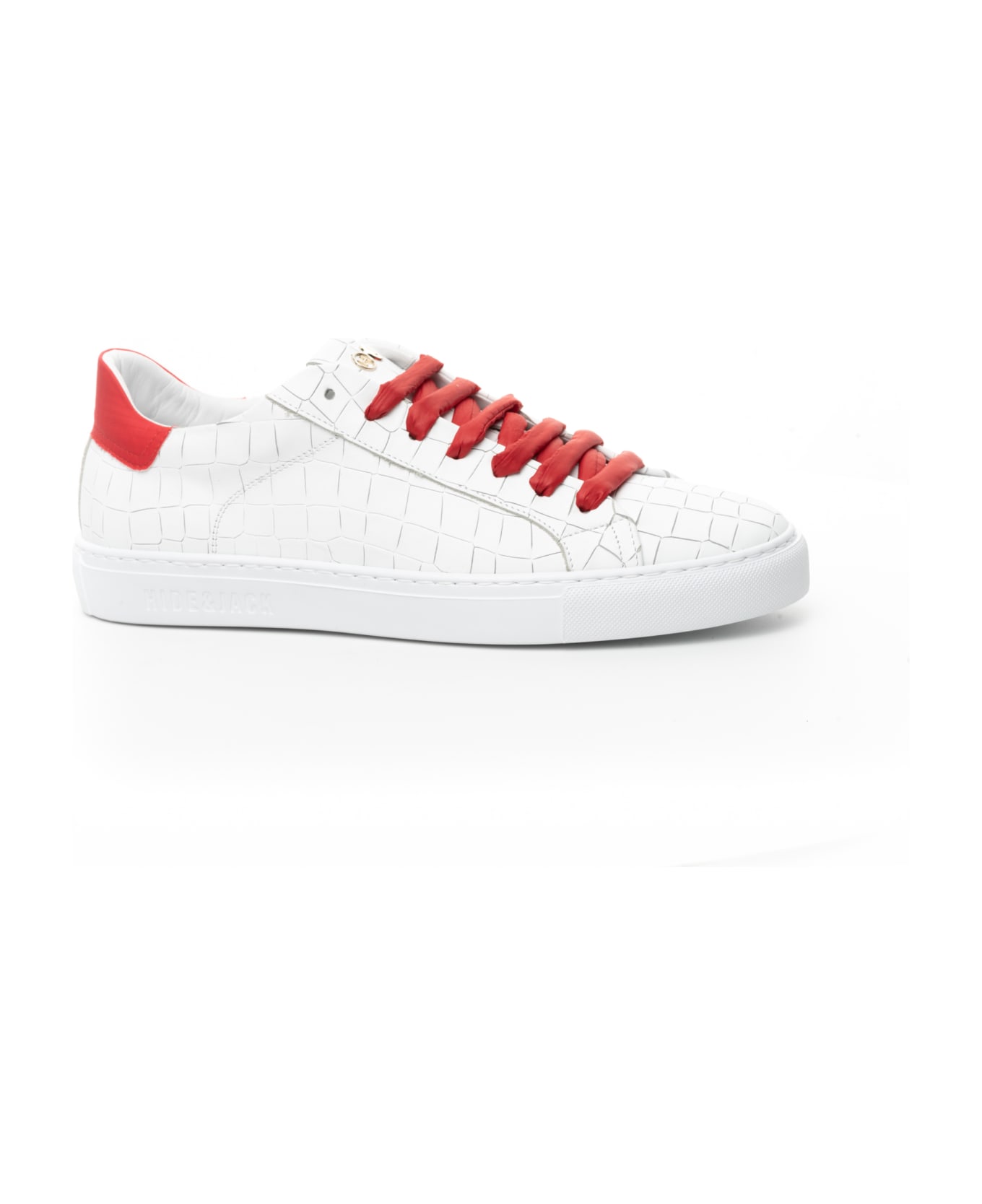 Low Top Sneaker in 100% Leather printed White Croco Red Spoiler