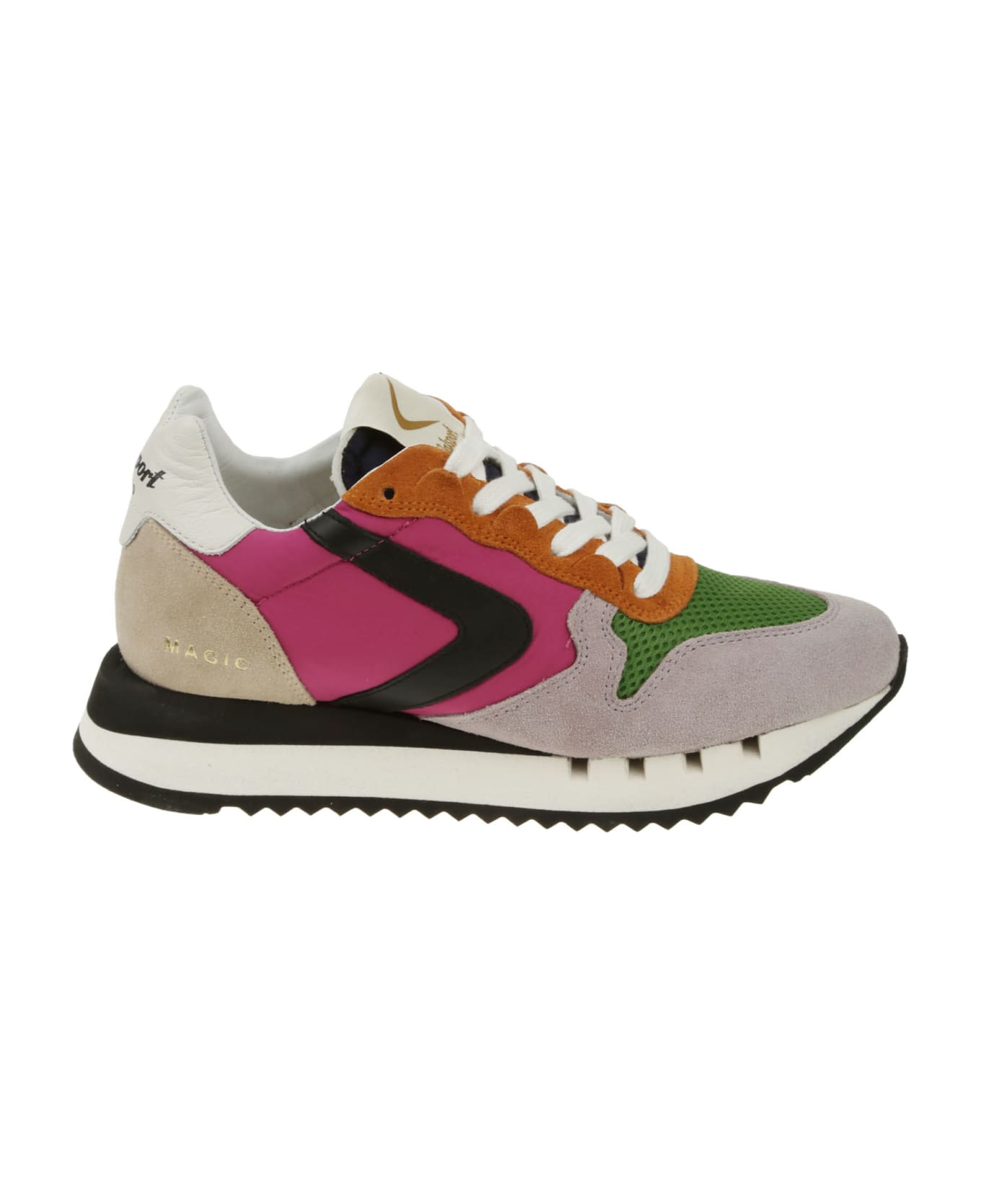 Valsport Multicolor suede and nylon sneaker, leather inserts, rubber sole, logo detail.