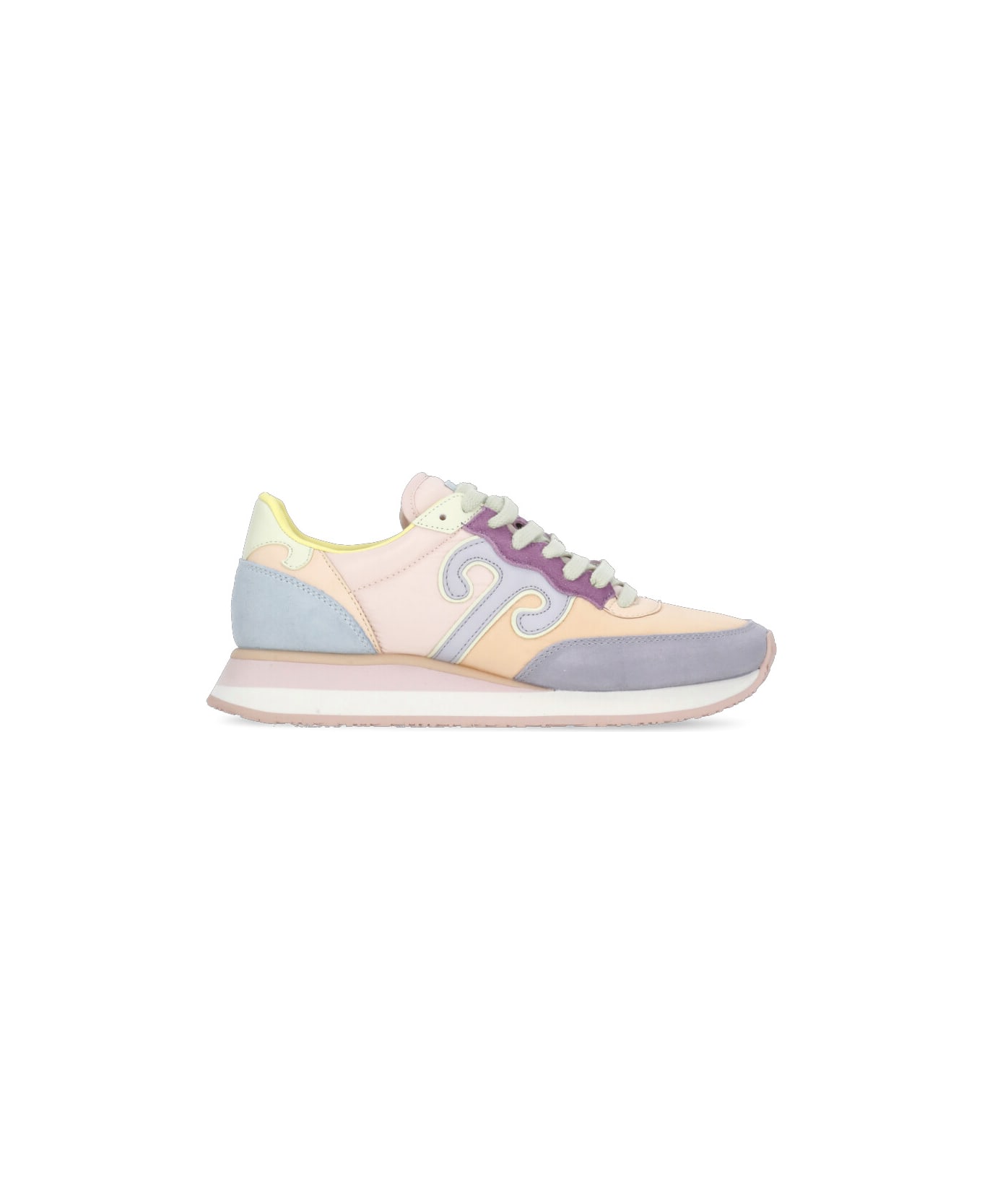 - Multicolor Wushu fabric and leather woman's sneakers - Round toe - Laces fastening - Suede leather inserts - Contrasting color inserts - Loged tab at tongue - Side iconic Ruyi logo - Rubber raised sole (4 cm)